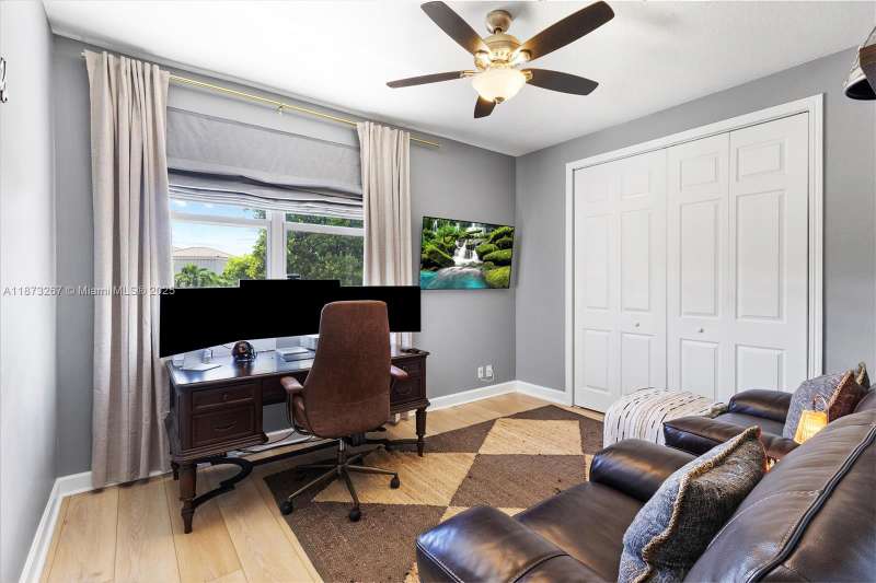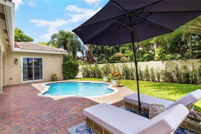 Discover South Florida living at its finest in your dream home! One of the few oversized lots in the sought-after community of Biltmore Estates at Monarch Lake in Miramar. Perfectly designed for entertaining and everyday ease and comfort.The outdoors is designed for relaxation, surrounded by lush tropical landscaping, pool area, and a large yard with a private back patio. The meticulously designed kitchen features quartz countertops, waterfall island, wine fridge and custom designed coffee station. Custom woodwork and built-ins throughout make this home a one-of-a-kind. Courtyard features private guest/in-laws quarters. The primary ensuite includes an added room perfect for office, nursery, or 5th bedroom. Impact windows and doors throughout. This home is both inviting and sophisticated.