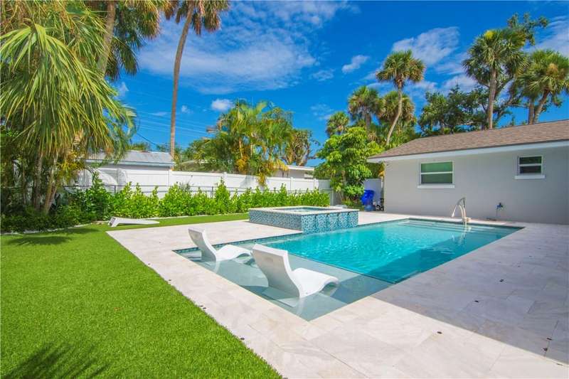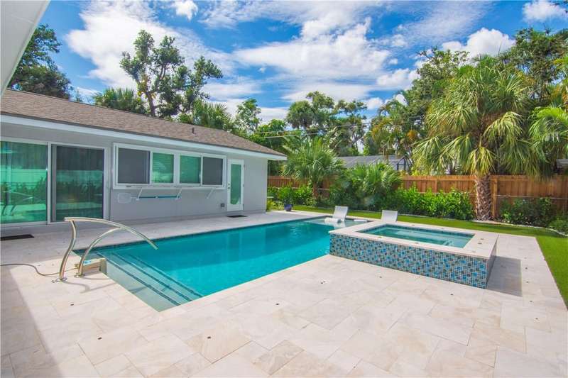 Rare opportunity in Central Beach! This beauty is available for the 2026 season! Walk to town, Memorial Island, or Quail Valley from this 3 bedroom 3 bath home. Enjoy the heated, salt water pool and spa within the fully fenced backyard when not hosting your friends in the spacious open plan living room, bar, and kitchen. Easy to show. Sizes approx/subject to error.