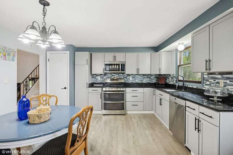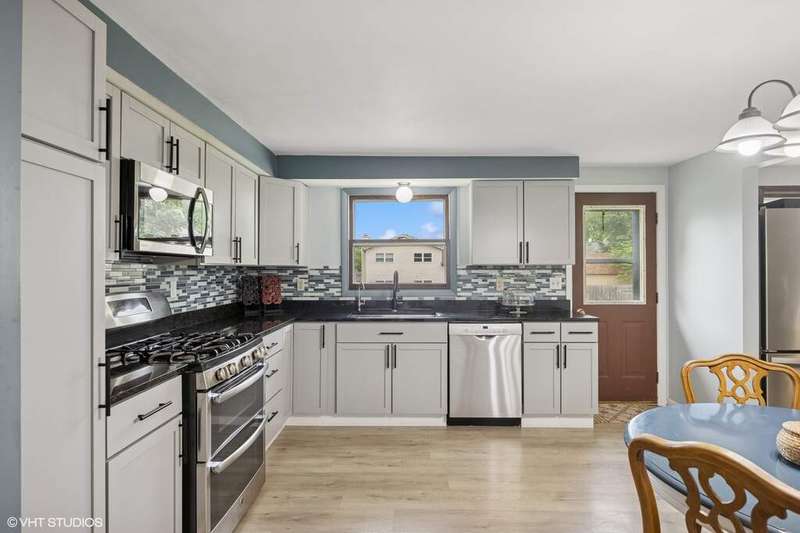 Desirable split level offering 4 bedrooms, 2 1/2 bathrooms. Beautiful foyer welcomes you to the vaulted ceiling living room and dining room. The Recently Updated Spacious Kitchen (2022) with granite counters, stainless steel appliances, decorator backsplash, and pantry offers backyard access to the lush 100 X 120 lot. The 2nd level offers 3 bedrooms and 2 bathrooms with newer carpeting. The lower level offers a large family room with free standing fireplace plus an additional flex room for use as bedroom, den or office?? The large attached 2 plus garage has backyard access. Roof 2015, freshly painted exterior 2019. Come enjoy this great home in a prime location close to shops, parks, schools and town! This is the ONE!!