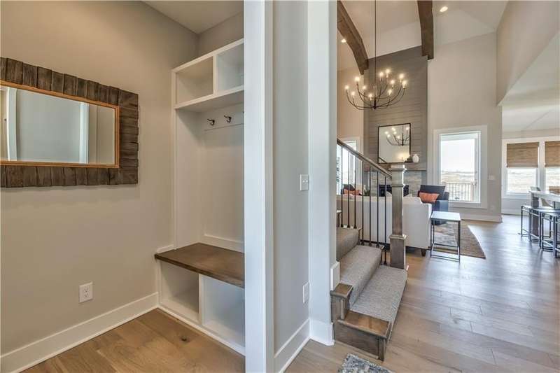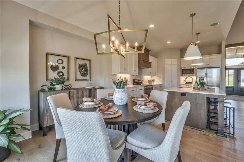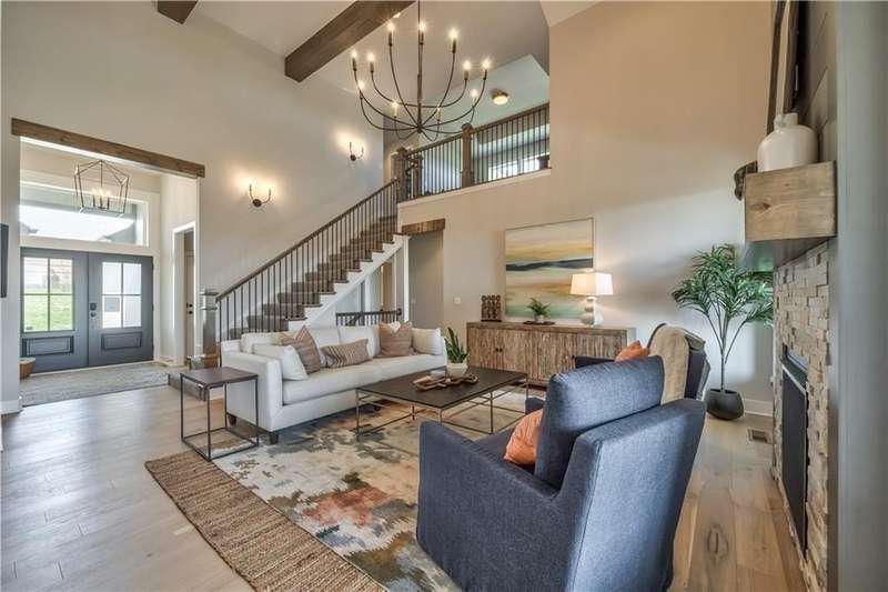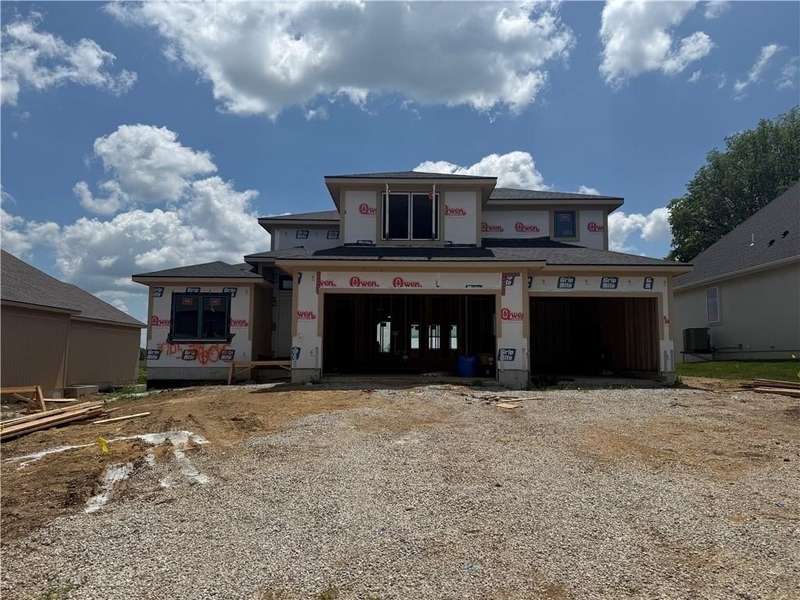 Southern Meadows welcomes Wheeler Homes to its builder line up. This fantastic 1.5 story home is full of incredible features and sits on lot 53. The Newport 1.5 story has a wow at every turn. Great curb appeal featuring double front doors, modern hip roof line, oversized 4 car garage, great landscaping and fully irrigated yard. 2 story great room ceiling and functional layout make this the perfect choice. Main floor features 2 large bedrooms, kitchen with oversized pantry, custom cabinets with under counter lighting, built in appliances and oversized island that opens to great room. Primary bedroom comes complete with free standing tub, walk in shower and large closet with direct access to laundry. Enter into a true mud room off of the garage. 2nd floor is equally as impressive with fantastic loft space and 2 generous size bedrooms that have direct bath access and large walk in closets. Enjoy peaceful views looking out to a farm and a covered patio. This home is set to be complete in early 2026. Overland Park address and Blue Valley schools! Buyer is still able to make color selections. Pictures of completed home are same floor plan but finishes and colors will vary.