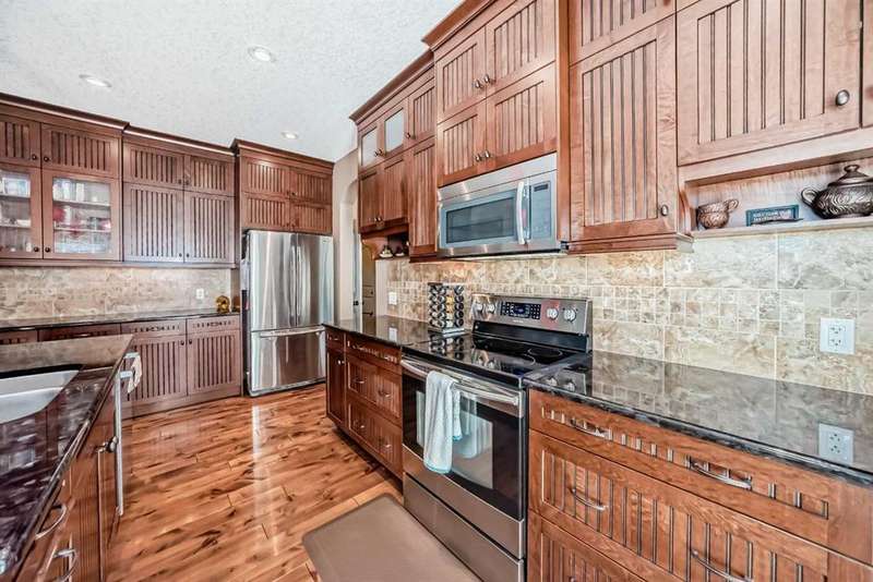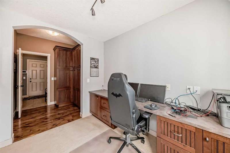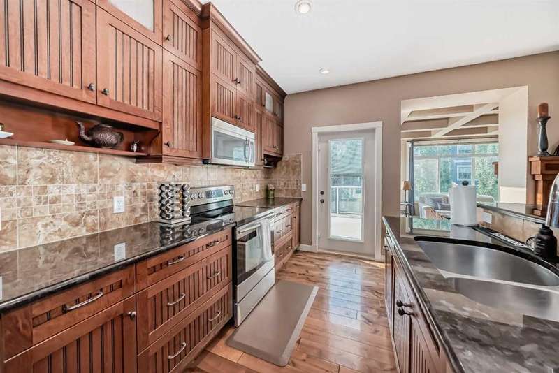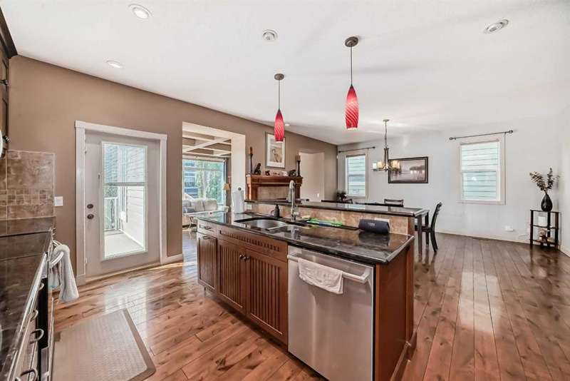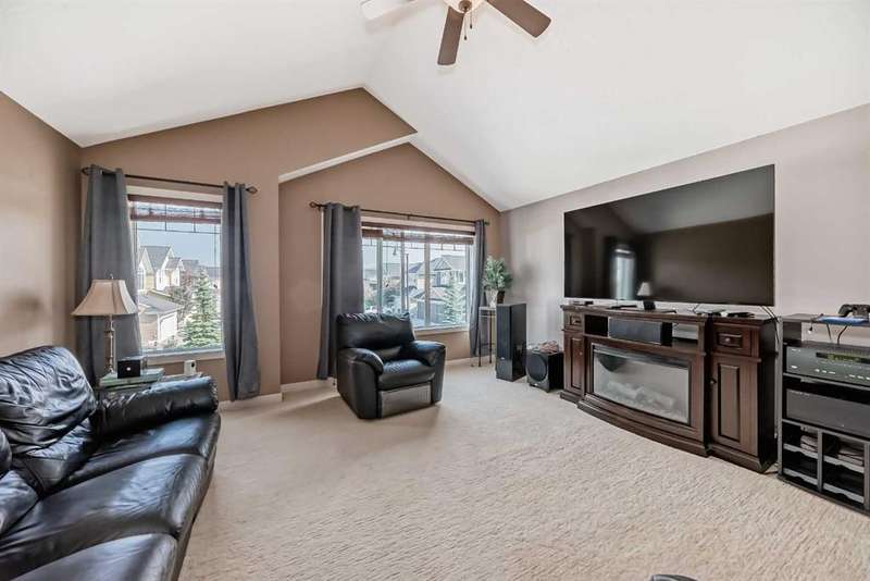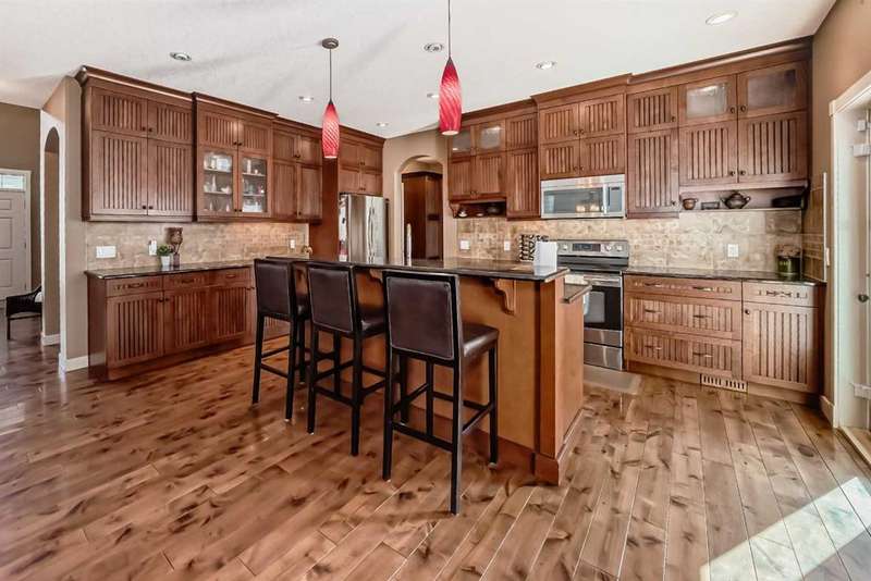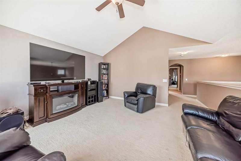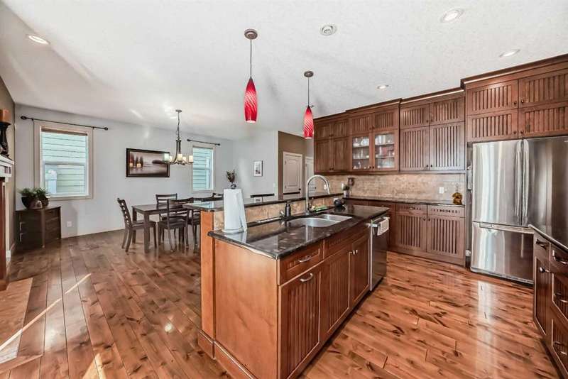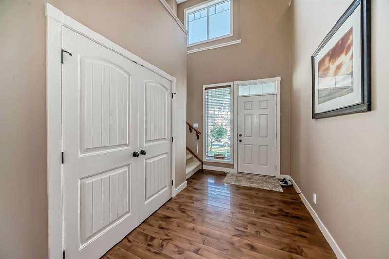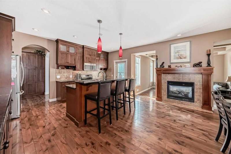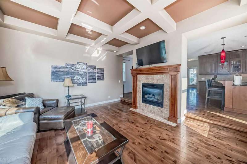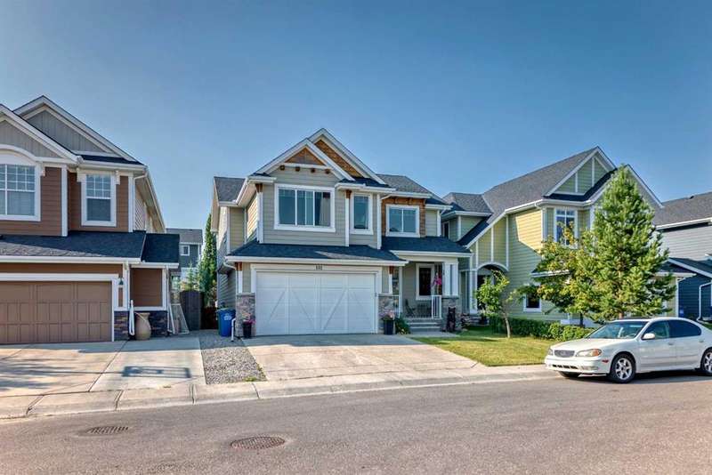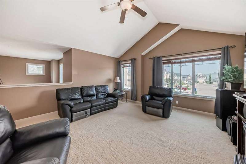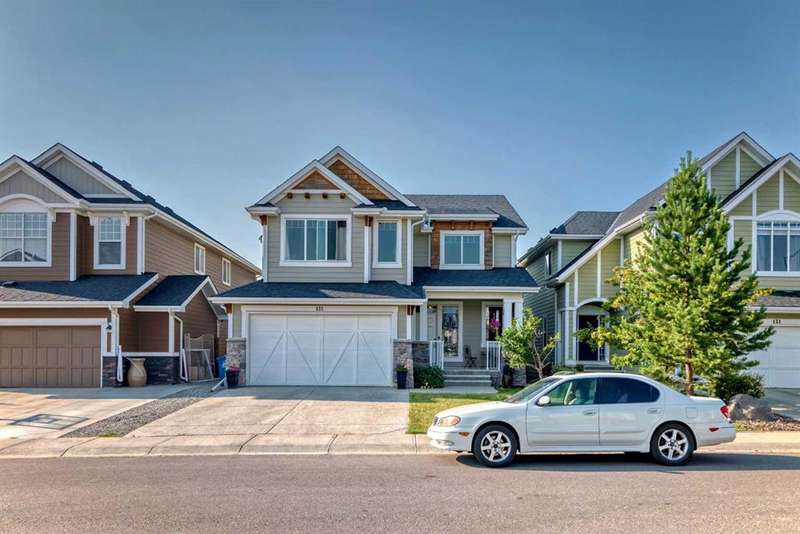 BACK ON THE MARKET DUE TO FINANCING. PRICE REDUCED BY OVER $50K!! Incredible Cal Bridge home in the wonderful community of River Song. Outside the house is beautifully done with Hardie board siding, cedar accents, exposed aggregate driveway, and large front porch to enjoy a coffee or tea in the morning. Walk in and you are greeted with a full height ceiling leading you into a stunning main floor layout. 9ft knockdowns throughout, 4” Alder hardwood flooring. Large dining room features a 2 sided gas fireplace with tile surrounding. Gourmet kitchen features full height cupboards, granite, extra pot drawers, built in maple panty, SS appliances, and a large island with bar seating. The formal living room has a shared fireplace, coffered ceilings and large windows giving views of the yard and deck. Also included on the main floor is a formal office with a built in desk and filing drawers, mudroom connecting to the garage and half bathroom. Upstairs you will find a large bonus room with vaulted ceilings. 2 good sized bedrooms and an oversized master with 5pc en-suite, vaulted ceilings and a large walk-in closet. The laundry is located on the upper floor where it is needed the most and is opposite the 4pc guest bathroom. The large un-finished basement is ready to be developed into your dream space and includes 8’-6” ceilings, large windows and rough ins for a bathroom and wet bar. The backyard features a large deck with plenty of storage room underneath, a lower wood deck and a built in storage shed. Located close to Bow Valley high school and the upcoming K-8 school and a two minute walk from the ridge view pathway leading through the ravine down to the river. Come and check out this beautiful property in beautiful Cochrane as it's a perfect place to grow with your family. Please book your private showing today!!