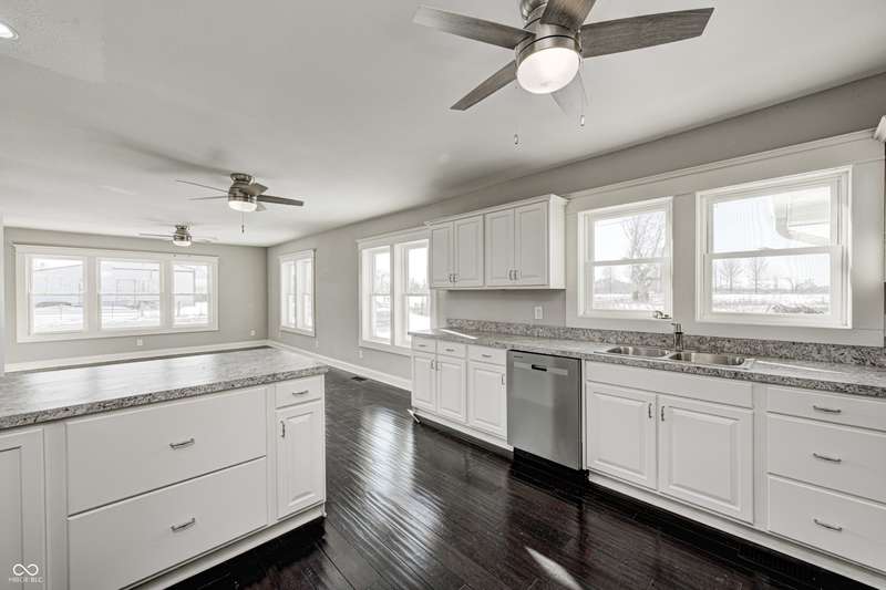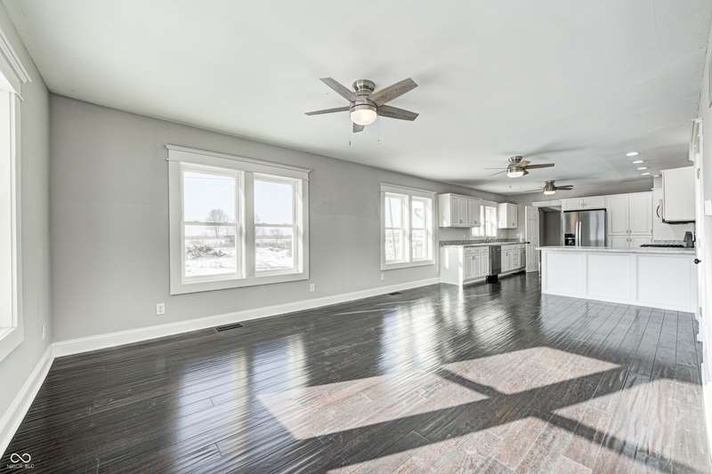Beautifully renovated modern farmhouse located on over 2 acres in the country! This 3 bed 2 bath home has an open floor plan with the primary bedroom on the main level. Home features include Brazilian Hardwood flooring, Tin roof, new windows, new HVAC, all new cabinets and many more items! The great room is spacious, full of natural sunlight and flows into the kitchen space. The contemporary kitchen has plenty of cabinets, cabinet space, and all new stainless steel appliances. There are 2 large bedrooms that are upstairs. The home has an unfinished basement but has plenty space for storage or create your own personal area. Quaint front porch that you can enjoy the gorgeous sunrise and sunsets! Enjoy the peaceful life of country living in a reconstructed home, yet close to I70!