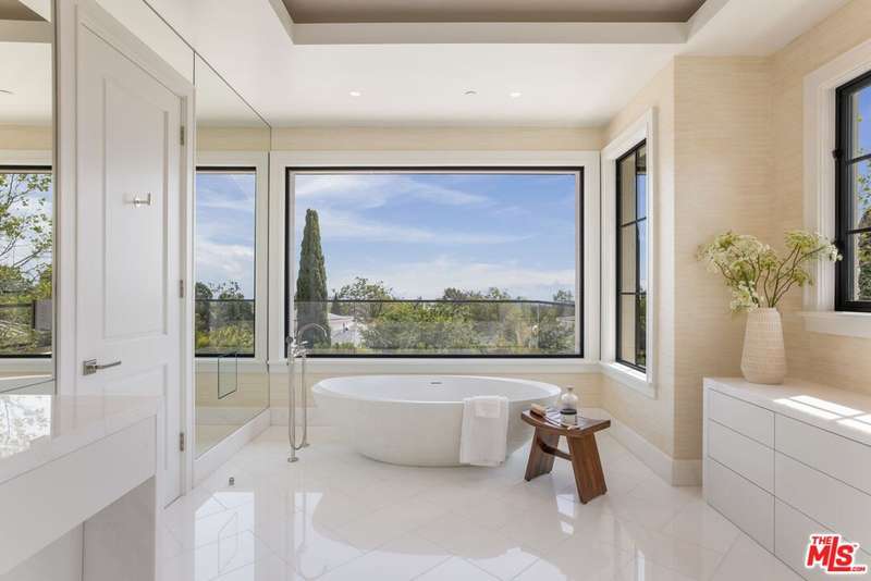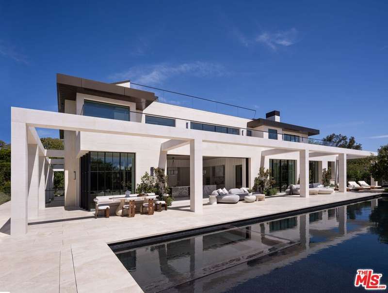 This newly completed approx. 16,500-square-foot estate in Brentwood is the debut Los Angeles development designed by internationally acclaimed AD100 Hall of Fame firm, Ingrao Inc. Inspired by the architectural grandeur of the Getty Museum, the residence is clad in timeless limestone, accented by sweeping travertine pavilions and a stately bronze roof. Positioned on a private, gated, and sprawling lot, the home offers sweeping views of the Pacific Ocean and panoramic views of the Getty and the city. Crafted with the highest caliber of design and materials, the estate features 7 bedrooms and 14 bathrooms arranged across three levels, connected by a sculptural staircase and private elevator. The primary suite is a true retreat, boasting dual baths, dual walk-in closets, and a vast ocean-facing balcony. With an art gallery, auto gallery, and a main floating staircase that acts as a complex structure of art, the home was designed for a collector who enjoys elevated living and exceptional entertaining. A rooftop deck offers 360-degree views, a firepit, and a bar, while the state-of-the-art movie theater, indoor/outdoor wellness center with gym, sauna, steam room, and cold plunge bring resort-level luxury into daily life. Outdoor amenities abound: a serene pool with Baja shelf and spa, a pool house with built-in BBQ, a fire pit encircled by mature strawberry trees, and an expansive presidential-like flat lawn framed by sycamore trees and landscaping curated by Will Bailey, formerly of Christine London, to harmonize with the estate's refined architecture. Additional features include a 2-car main-level garage, an 8-car subterranean garage with a dedicated security room, and infrastructure for a guard booth at the entry gate. Every element of this estate has been meticulously considered to deliver an unmatched lifestyle, an architectural and design tour de force in one of Los Angeles' most coveted enclaves.
