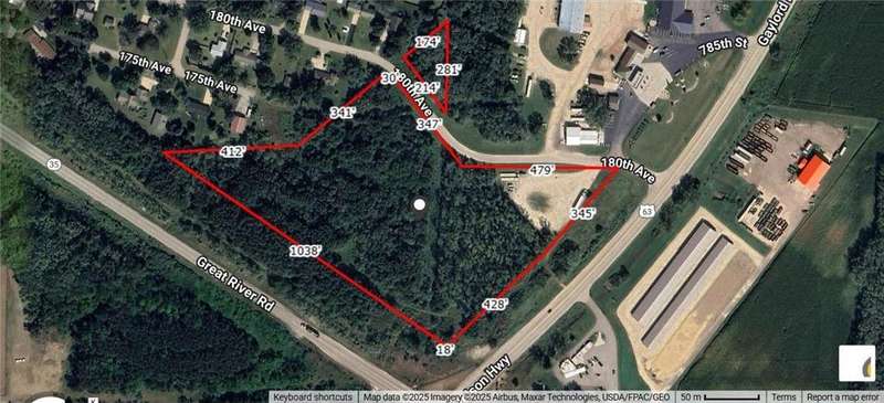 Commercial Development Opportunity: This 11.43 AC parcel is in a high traffic location with great visibility on the corner of two state highways (Hwys 35 and 63). This parcel features a level building site with a gravel parking area already there. The area currently supports a diverse number of business operations and industrial factories. This property is an excellent choice for a new retail development, warehouse, storage garages, service station, or shop or trucking garage. It's a perfect location and it has a convenient access point with a turn lane already available.