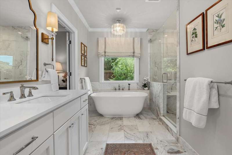 Situated on a spacious corner lot just under half an acre, this beautifully renovated two-story home offers 5,074 SF, including a 4,289 SF main residence and a private 785 SF guest cottage.The main house was extensively remodeled in 2020 with all new HVAC, plumbing, electrical, PELLA windows, tankless water heaters, and a 2023 roof. The first floor features 9-ft ceilings, French oak hardwoods, travertine, marble, and designer finishes. The open-concept living area includes a Control4 smart home system and a 36 gas fireplace. The gourmet kitchen boasts a Sub-Zero refrigerator, Wolf 6-burner cooktop and double ovens, Bosch dishwasher, warming drawer, microwave drawer, wine fridge, oversized island, and coffee-dry bar. The home offers 5 bedrooms, including a luxurious first-floor primary suite with spa-inspired bath, plus a flexible fifth bedroom currently used as an additional living room.Completed in 2020, the 785 SF guest cottage is ideal for multigenerational living, with a full kitchen, laundry, sitting room, bedroom, and accessible bath with curbless shower. Separate tankless water heater and HVAC service for guest house , American hickory hardwoods, PELLA windows, and custom window treatments make it move-in ready.Additional highlights include a sprinkler system, underground drainage, buried electrical lines, mature trees, and new gutters with leaf guards. Zoned to Overton Park Elementary, this rare property combines neighborhood charm with the comfort and efficiency of a nearly new build.