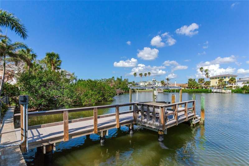 HOME SUSTAINED FLOODING FROM HURRICANE HELENE. HOME HAS BEEN REMEDIATED AND WAITING FOR YOUR PERSONAL TOUCHES. CHARMING WATERFRONT RETREAT WITH PRIVATE BACKYARD OASIS This beautifully modern 2-bedroom, 2-bathroom is just a short walk to the beach and nestled beside Friendship Park, offering a serene and convenient lifestyle in Redington Beach. Featuring a 1-car garage and an inviting front lanai, this home is perfect for enjoying the Florida lifestyle. The private backyard oasis provides the ultimate space for relaxation, complete with a newly added dock and lift (10k lbs) installed in 2020—ideal for boating enthusiasts. Whether you’re looking for a peaceful retreat or a luxurious coastal lifestyle, this home combines modern touches with a fantastic location near the beach. Don't miss this unique opportunity!