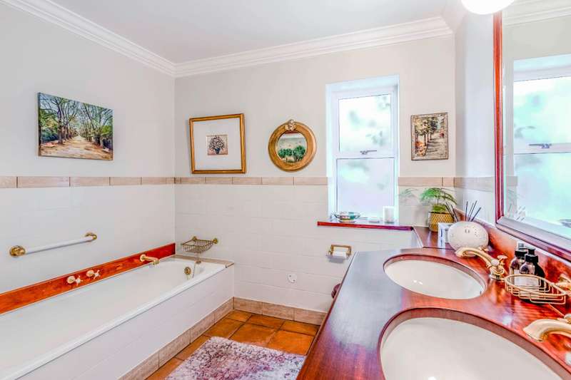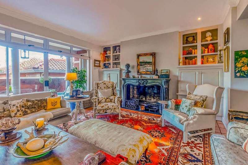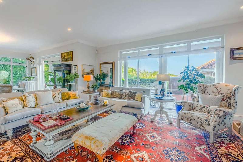 Rarely available, this stunning home is in the prestigious Mussel Cove, an eight-home, ocean front estate nestled between mountains and Skulpiesbaai. These coveted properties seldom come to market. This classic yet modern home offers five spacious bedrooms, three with en-suite bathrooms, and two sharing a large family bathroom. The chef's kitchen, with high-end appliances and a separate scullery, flows into the dining room. The bright living room, featuring a magnificent fireplace and sliding glass doors, opens to breathtaking Walker Bay views. The expansive outdoor terrace and deck are perfect for entertaining, offering uninterrupted ocean vistas. Enjoy well-established, private gardens with a vegetable patch. Boasting sea vistas and mountain views from your private patios and balconies. Ample parking, private gardens, store rooms and staff accommodation to name a few! Nestled in a tranquil enclave complemented by beautiful fauna and flora. Located close to our famous beaches, restaurants, village centre and much more! Please contact me today to arrange a private viewing.