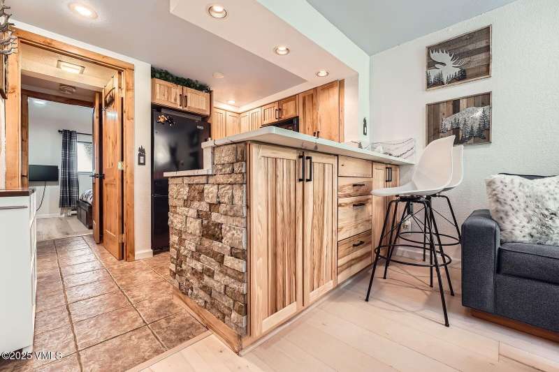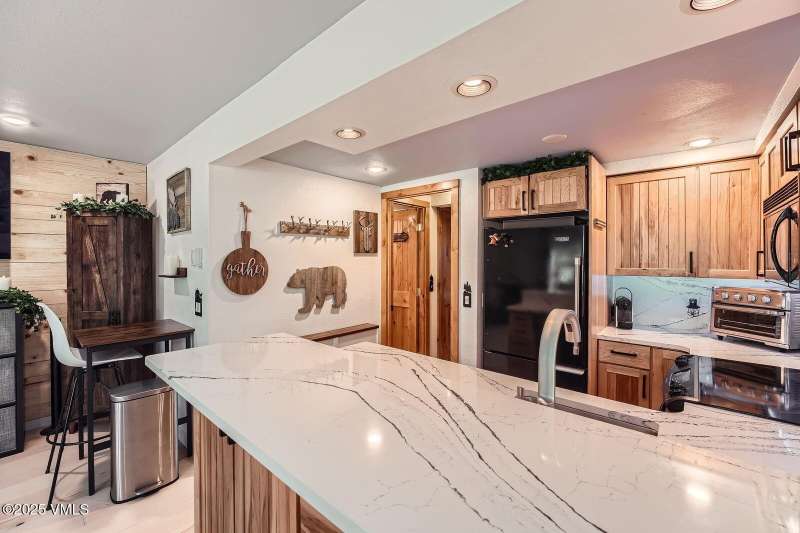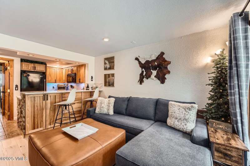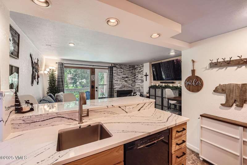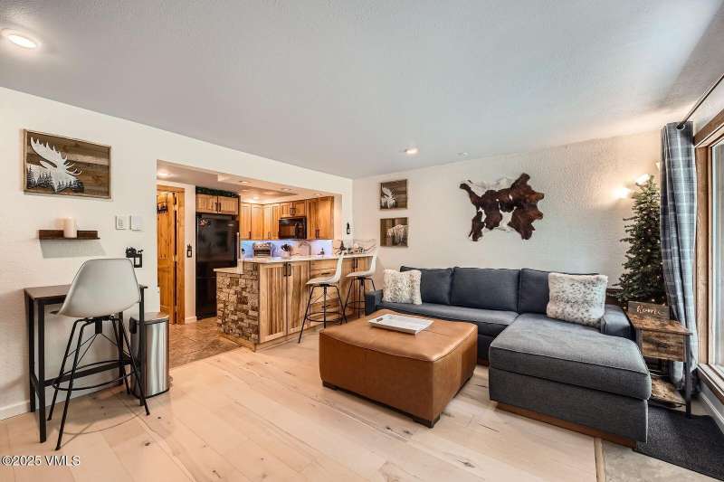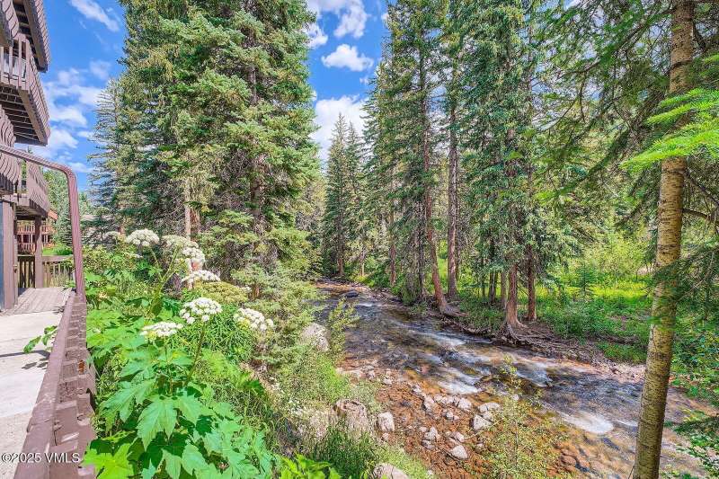 Welcome to Your Creekside Mountain Oasis. Tucked along the tranquil banks of Gore Creek, this beautifully updated one-bedroom, two-bathroom residence is the perfect mountain retreat. Whether you're relaxing in the cozy living room or unwinding on the private patio, the soothing sounds of the river create a peaceful, rejuvenating ambiance. Thoughtfully renovated, the home features a modern kitchen, a Cambria Portrush full thickness quartz countertop bar for casual dining, a warm dry-stacked stone floor-to-ceiling fireplace, custom wood accent wall, wide plank maple floors and radiant heated tile floors. Ample storage throughout ensures practicality without sacrificing style. This home is being offered partially furnished. Located in the amenity-rich Vail Racquet Club, residents and guests enjoy tennis and pickleball courts, a year-round pool, hot tubs, sauna, steam room, and a fully equipped fitness center offering complimentary classes. Additional perks include concierge service and rental property management service, the Après Café Bar & Restaurant, access to 8 ChargePoint EV charging stations and secured indoor bike storage. With the free Town of Vail shuttle just steps away, getting to Vail Village is effortless. This Vail Racquet Club gem is a must-see mountain escape!