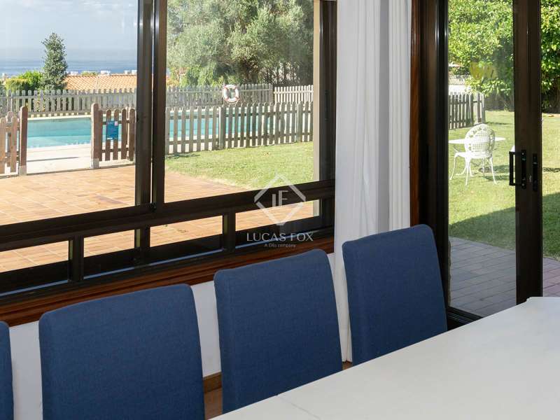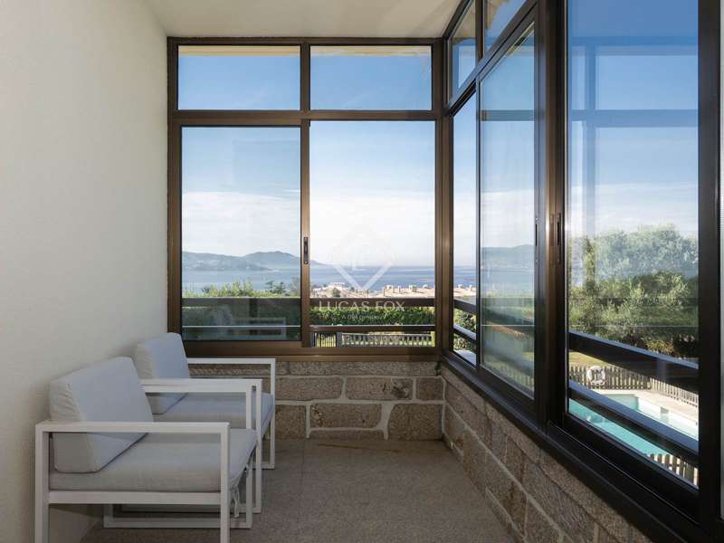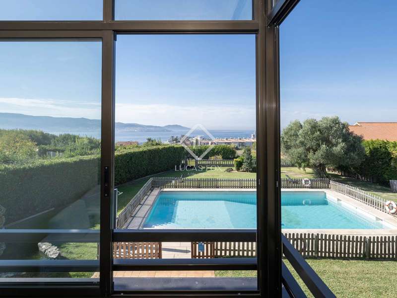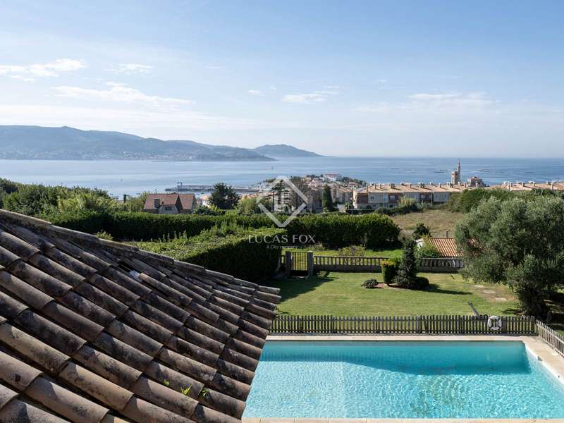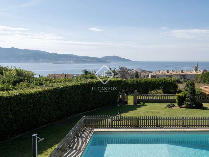 The property stands on a large private plot of approximately 2,500 m², fully enclosed and surrounded by mature vegetation, ensuring exceptional privacy and an atmosphere of absolute serenity. With a built area of approximately 528 m², the home has been designed for comfort and family living, both indoors and outdoors. Its orientation and layout maximise natural light and allow the maritime landscape to be enjoyed from various points throughout the house. The main floor features an elegant entrance hall that welcomes us and leads to the different areas of the home. Here we find a fully-equipped separate kitchen and a spacious living room with a fireplace, opening onto a glass-enclosed gallery with sea views, an ideal space to enjoy the scenery all year round. On this level, there are also two bedrooms with fitted wardrobes, a complete bathroom, and the main suite, which includes a walk-in wardrobe, private bathroom and direct access to the gallery. On the lower level, with independent access to both the garden and the main entrance, the property offers a space designed for leisure and social gatherings. A large event-style kitchen with dining and bar area is complemented by a multipurpose room, a bedroom, a full bathroom, and a cosy lounge with fireplace and direct access to the pool. This level is perfect for hosting guests or enjoying relaxed family moments in a comfortable, informal setting. The upper floor offers three additional bedrooms and a complete bathroom, providing multiple possibilities of use: a guest area, home office, or independent relaxation space. Outside, the property becomes a true natural retreat. The extensive plot combines beautifully landscaped gardens with leisure and relaxation areas. The swimming pool, surrounded by greenery and overlooking the sea, invites you to unwind while enjoying the sunshine and the Atlantic breeze. The barbecue area and covered porch offer the perfect setting for al fresco dining, while the traditional Galician hórreo adds a touch of authenticity and charm. In addition, the estate includes a separate building, ideal for use as a guest house or private studio. This villa represents the perfect fusion of privacy, spaciousness and incomparable views. An ideal property for those seeking a luxurious residence on the Galician coast, surrounded by peace, nature and light, yet within easy reach of the amenities of Pontevedra and the area’s finest beaches. Please contact us for further information.