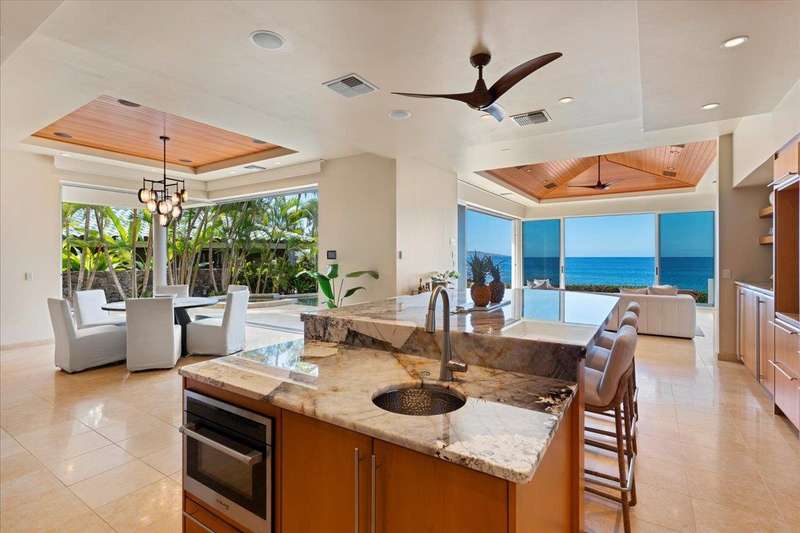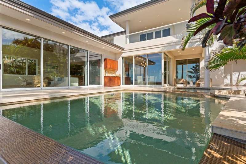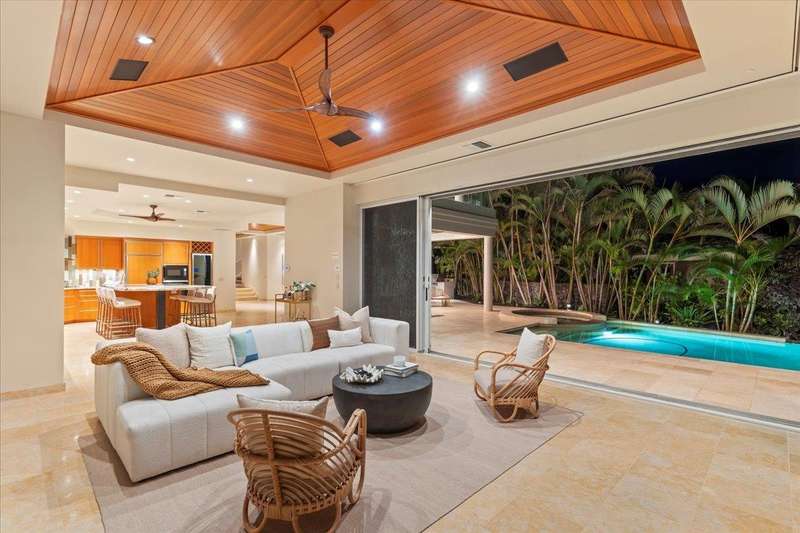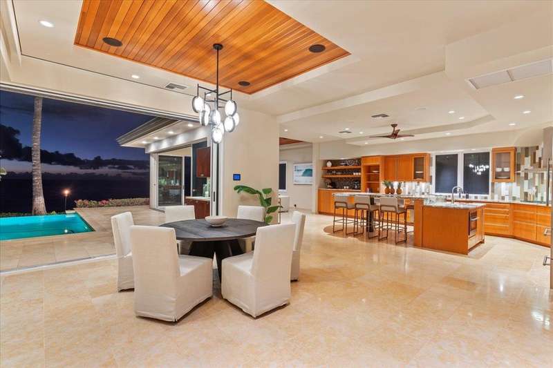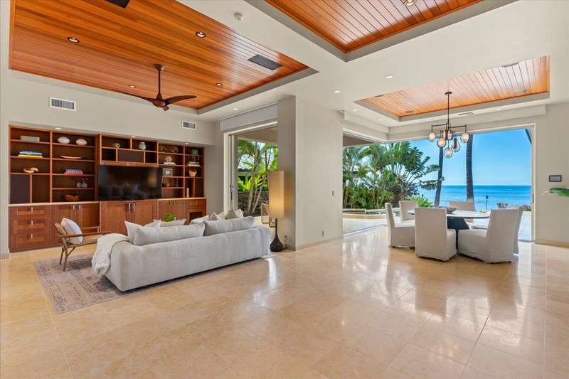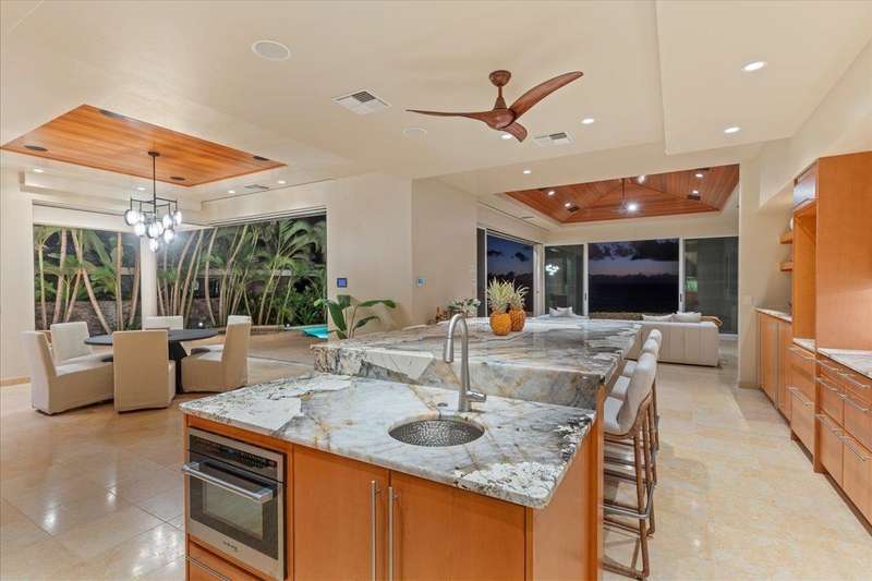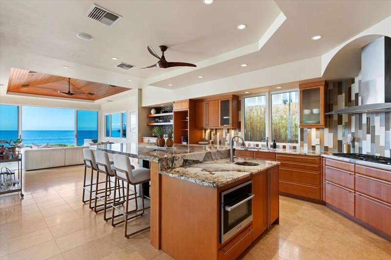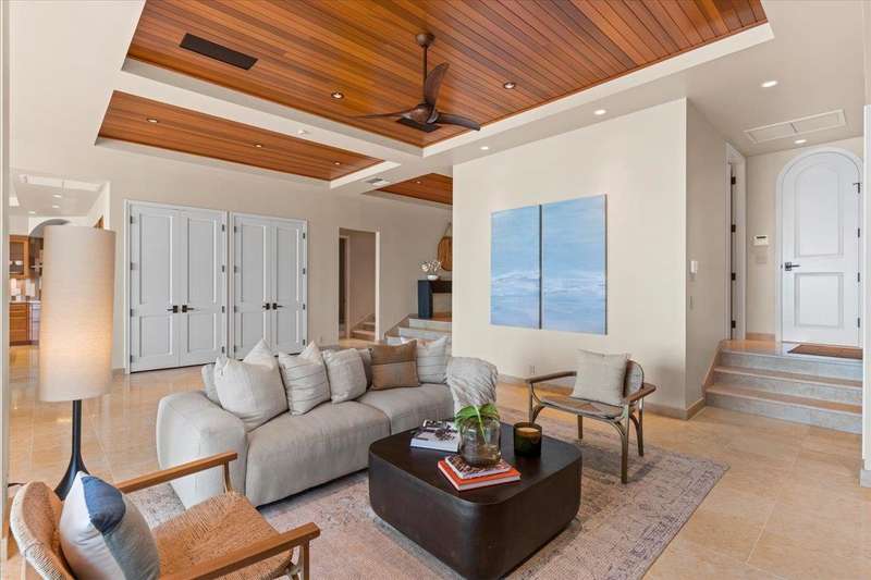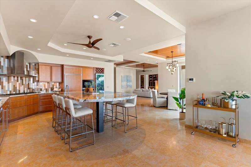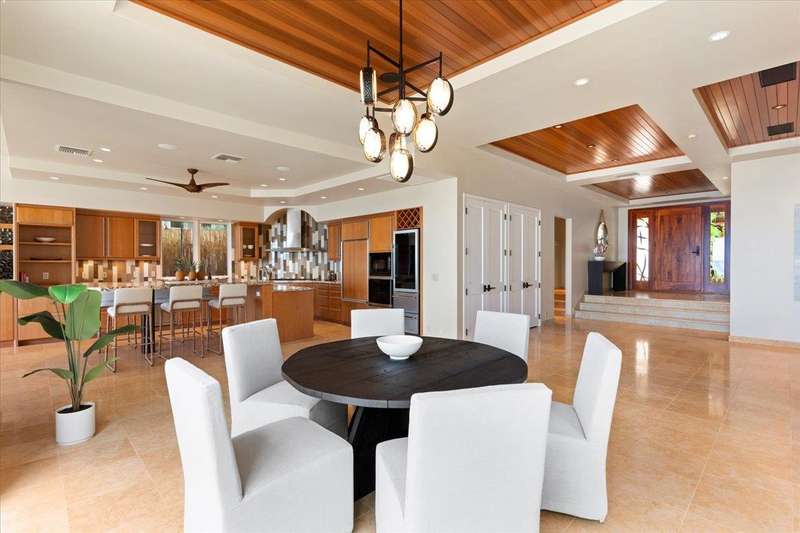 Nestled into a gated residential condominium community on Maui’s sun-drenched south shore, this 4-bedroom, 4.5-bath home provides over 4,300 sq.ft of interior space, beautifully renovated in 2024. This home offers stunning sunset views year-round. The updated kitchen has a substantial two-level island with Patagonia quartzite countertops and bar seating for six, with Leicht cabinetry, tile backsplash and amenities like a wine fridge and coolers. Two distinct living spaces and dining area open to the lanai, pool and spa creating an ideal setting for entertaining. In the winter months, enjoy whale watching with views of Molokini, Kahoolawe, Lanai, and Molokai. Enjoy snorkeling at one of the most premier snorkeling spots “Turtle Town”. On the ground floor there are two en suite bedrooms. Upstairs, the primary suite features a private ocean-view lanai, a wet bar and a bathroom with a soaking tub and large walk-in shower. The upper floor also contains the fourth bedroom and sitting area. Additional features include new 4-zone air conditioning, central vacuum system, recessed lighting, Jerusalem gold tile throughout, carpeted stairs and bedrooms, fresh paint inside and out, and wine cellar. New tile around the pool and spa. Just a short drive away you will find world-class dining, shopping and three exceptional golf courses.