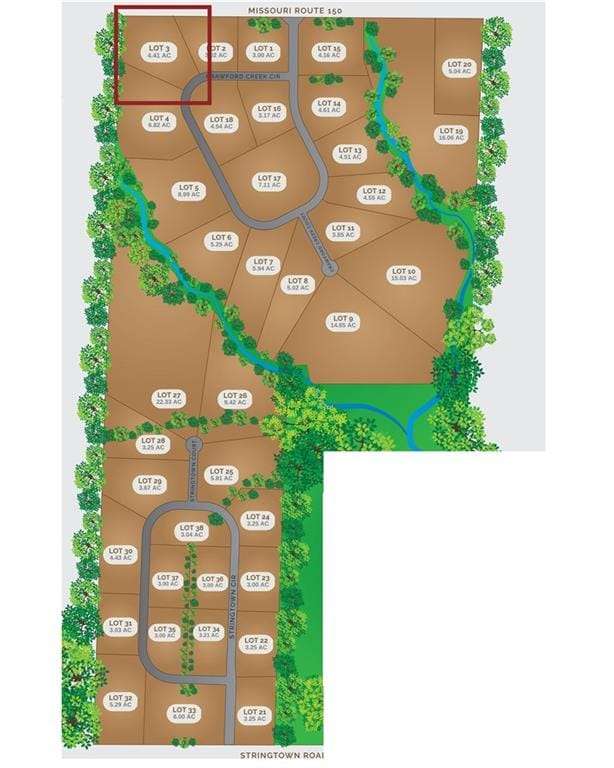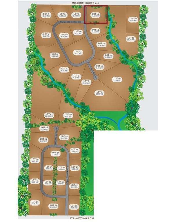 Welcome to Crawford Creek Estates. Jackson Counties NEWEST Premier Rural Acreage Community. Crawford Creek Estates Consists of 236 acres featuring 38 Private Estate sized acreage lots with hardwired broadband internet and 360-degree breathtaking views. These 38 lots range in size starting at 3 acres and vary all the way up to 22 acres and provide the unique opportunity for you to BUY NOW and BUILD LATER. Crawford Creek Estates highlights a variable topography which allows for flat, daylight, and walkout foundations. Running through the middle of this scenic 236 acres includes Crawford Creek itself which showcases its natural beauty with an abundance of wildlife, mature timber, and the comforting soundscape of rural Jackson County. Each one of our lots entail many features to attract a plethora of buyers. This scenic community is included in the Lees Summit School district, and is just a short drive to shopping, schools, and other modern-day conveniences. We look forward to assisting you with calling Crawford Creek Estates Home.