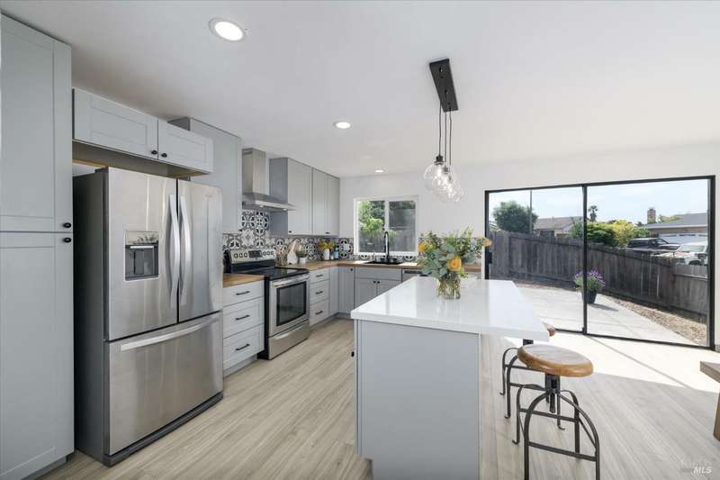 Stylishly Renovated & Ready to Impress! Step into this beautifully upgraded 4-bedroom, 2-bathroom home where modern design meets everyday comfort. The heart of the home a fully remodeled kitchen boasts brand-new cabinetry, sleek countertops, and stainless steel appliances, making it perfect for both cooking and entertaining. Bright, open living spaces, updated finishes throughout, and a warm, welcoming atmosphere make this home truly special. Outside, the large backyard featuring mature fruit trees mandarins, lemons, plums, figs, and peaches providing a taste of nature. Located in a quiet neighborhood with easy access to schools, parks, freeways, and just minutes from Six Flags, this home offers the ideal blend of convenience and charm.