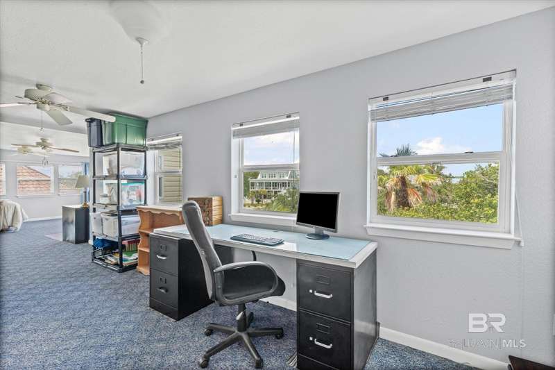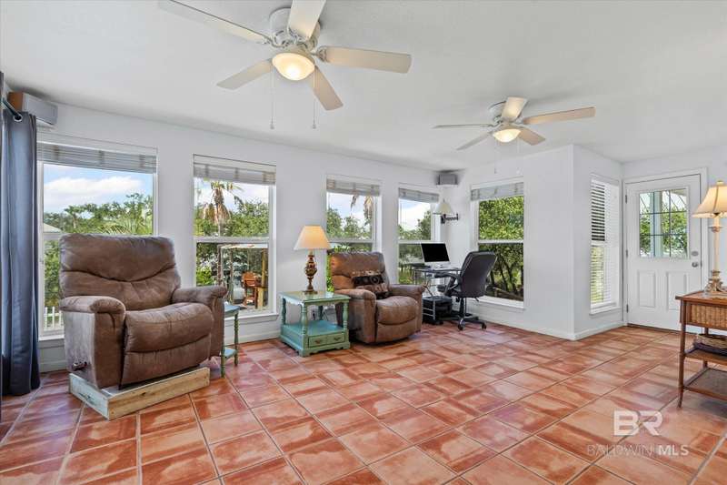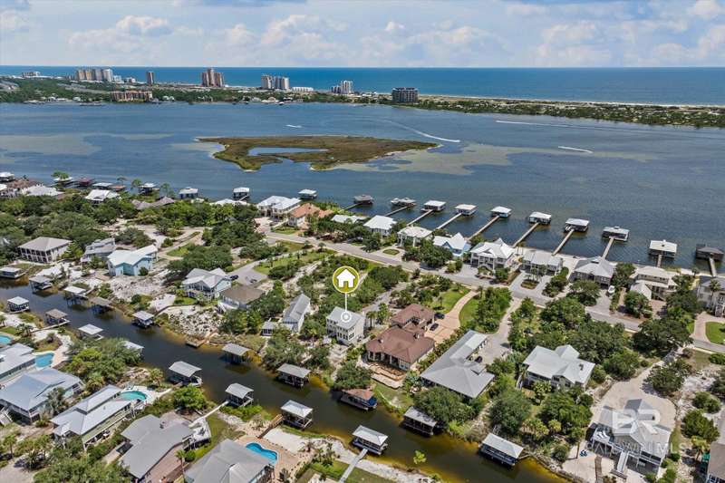 Waterfront Living on Ono Island!Experience coastal living at its finest in this 3-bedroom, 3-bath home located in the private, gated community of Ono Island with 24/7 security. Situated on a large canal-front lot with mature oak and palm trees, the home is situated well off the road and offers both stunning water views and privacy. The living room features soaring ceilings, a stone fireplace, and an abundance of natural light. An enclosed sunroom/family room provides additional living space with waterfront views. Upstairs, you will find two bedrooms, two baths, and a versatile shared sunroom currently used as a fourth bedroom and office. The outdoor space is a true retreat, featuring a covered patio, expansive sunny deck with an outdoor bar, and a private boardwalk leading to your own boathouse with lift. This home is ready for your personal touch and is perfect as a full-time residence or vacation getaway. Buyer to verify all information during due diligence.