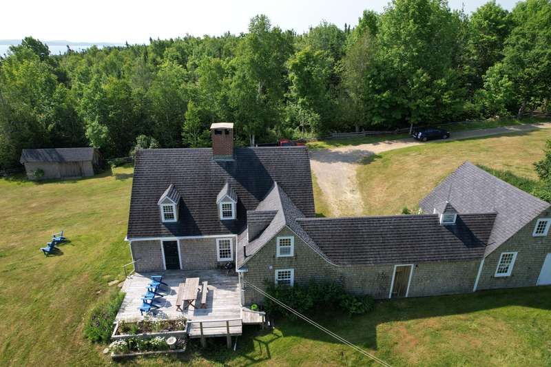 Brand new roofs, Summer 2025! Perched above Passamaquoddy Bay, The Kingsbury House has been a beloved summer residence for over a hundred years. This turnkey, three-bedroom home has several unique features including a large brick and stone fireplace with a bread oven. Family names and loving words are written into the bricks. A library with a woodstove, a full kitchen and full bath round out the main floor. A large deck spans the side of the house offering a stunning view of glorious sunrises as well as a welcoming outdoor space for entertaining. Take in vistas of Passamaquoddy Bay, Navy Island, The Algonquin Hotel in St. Andrews-by-the-Sea, Deer Island, and mainland New Brunswick, Canada. This delightful property includes a separate artist or wellness studio for creativity and a lovely breezeway connects a woodworking shop (23' x 19') to the house. Plus there are two detached garages, a 3-car garage (32'x 16') and a field garage (20' x 10') with an additional shed for lawn equipment. No matter how you choose to spend your leisure time, there is a place for you here. The yard celebrates a variety of pink peonies and wild roses that adorn the grounds, and there is a path to a rock beach that brings the sea into reach. Panning out, the property is tucked in by a cedar post fence. The property is situated between the Maine Coast Heritage Trust's Loring Cove Preserve (13 acres) and Loringwood, a 70+ acre family-owned property. The Kingsbury House is located in Perry on the 45th Parallel halfway between the North Pole and the Equator and between the border town of Calais and island arts community of Eastport. There are lakes, streams, and the Atlantic Ocean with hiking, biking and kayaking opportunities with fresh and saltwater public access all within a 20-minute drive. Neither words nor photos can express the totality of this beautiful property. It awaits new stewards to care for it as lovingly as those before them. Broker owned.