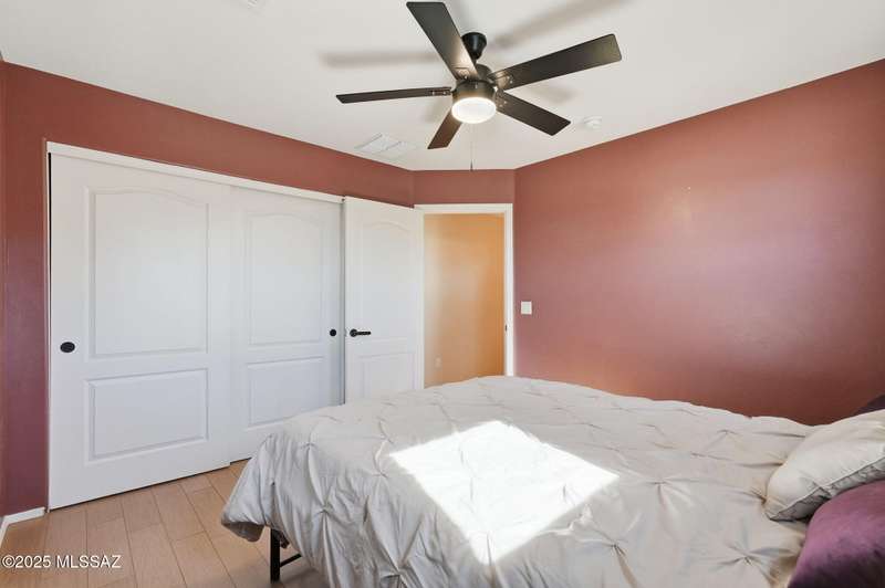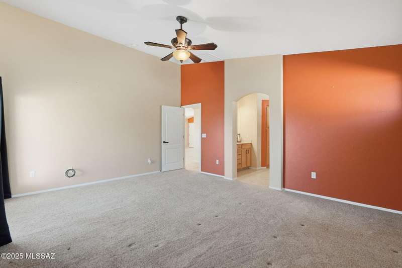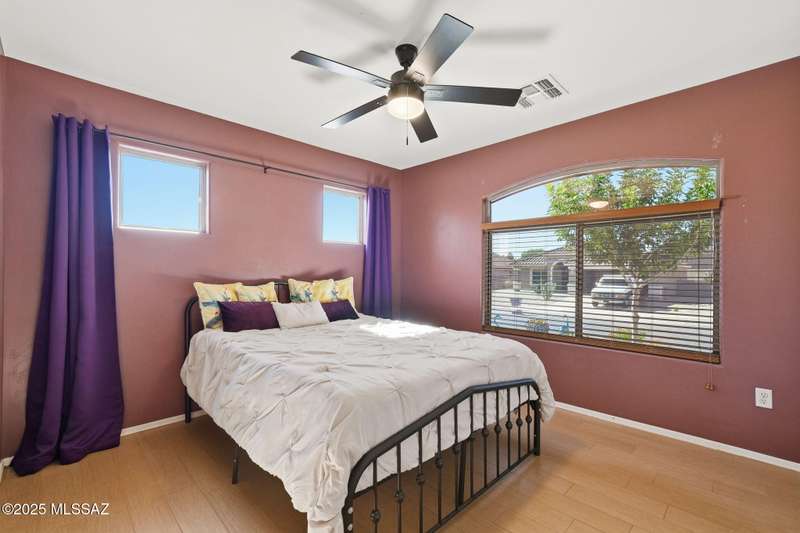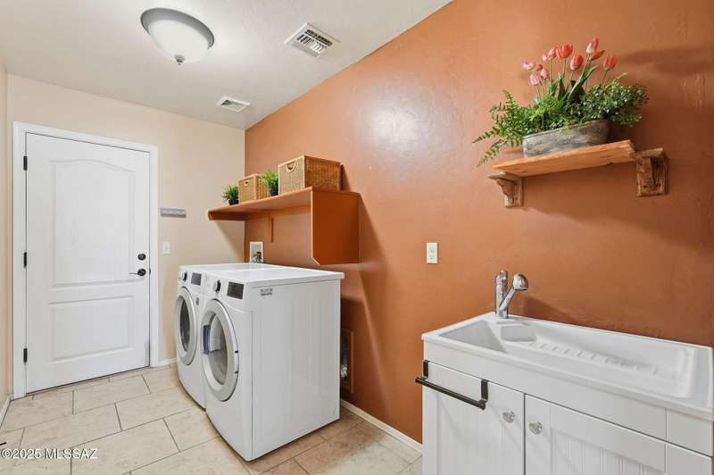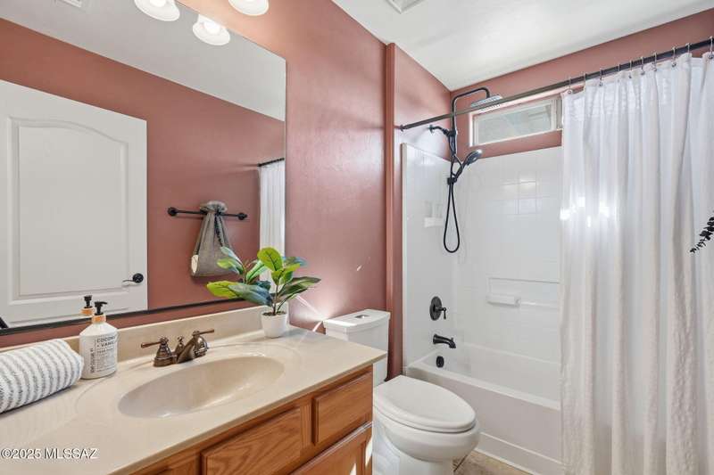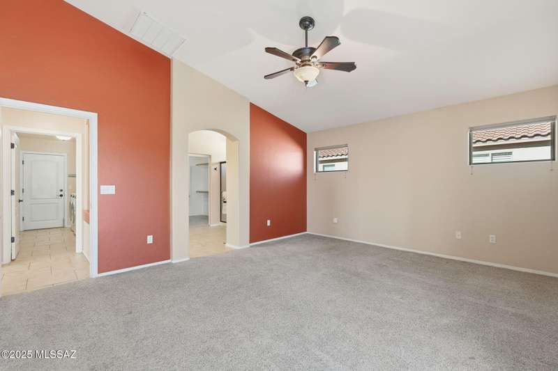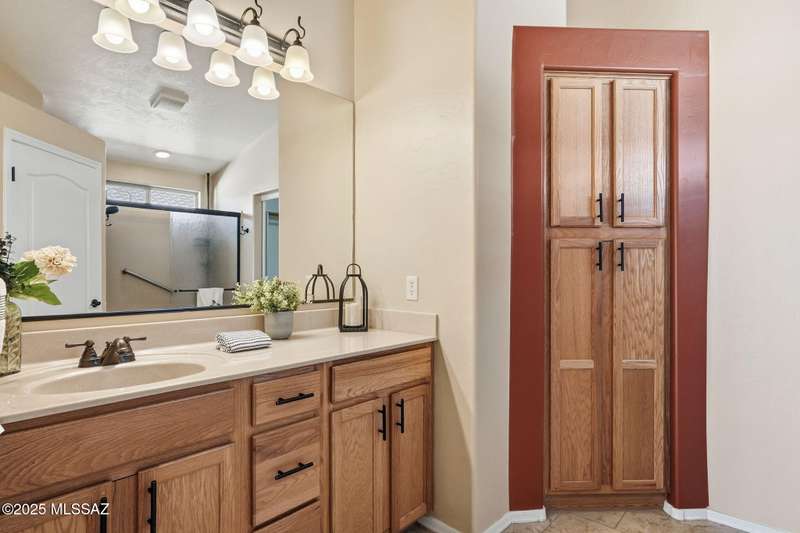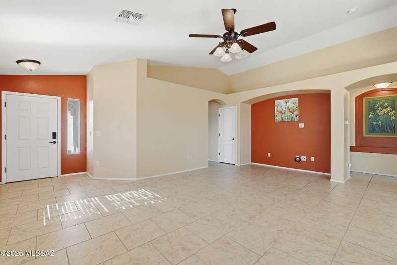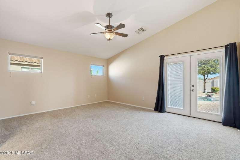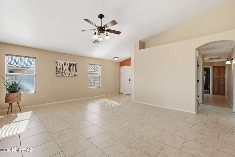 OWNED SOLAR, water softner, vaulted ceilings, knotty alder cabinets w/deep pot drawers,& a stunning backyard make this Desert Creek home a standout! This 2BR, 2BA + den layout features a remodeled kitchen w/granite counters, large island, travertine backsplash, stainless/black appliances, & a spacious pantry closet. Tile flooring throughout, except in the primary, w/the primary suite offering a walk-in closet & French doors to the patio. Enjoy outdoor living w/a built-in grill, gas fire pit, extended paver patio, elevated dining area w/mountain views, & a delicious producing lemon tree. Relax in the SPOOL--cool by day or heated for a soothing soak at night. Expanded 2-car garage with 4' bump-out for extra storage or workbench.OWNED SOLAR ensures comfort & efficiency year round!WELCOME HOME