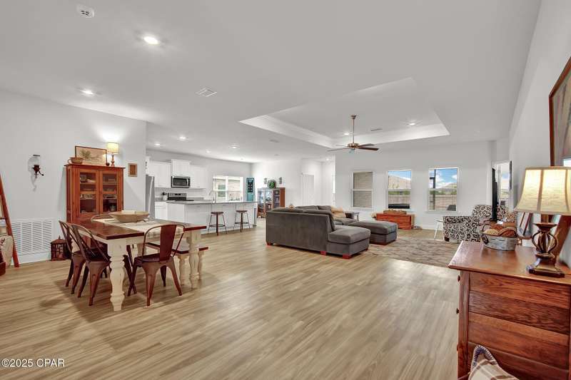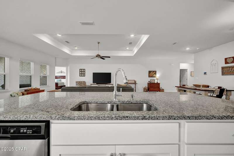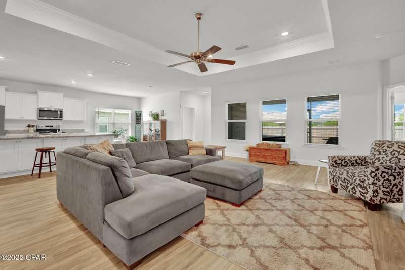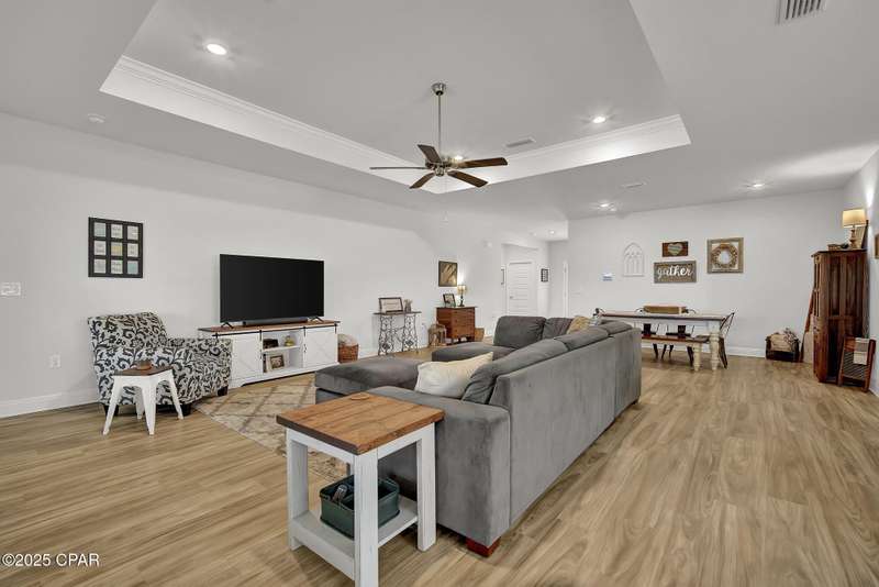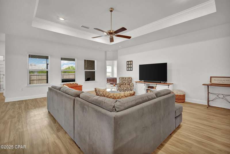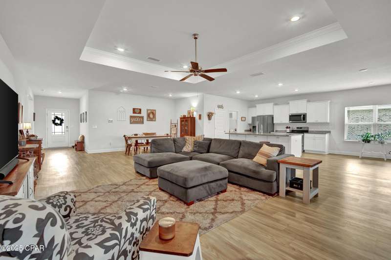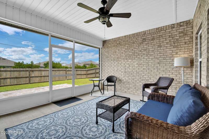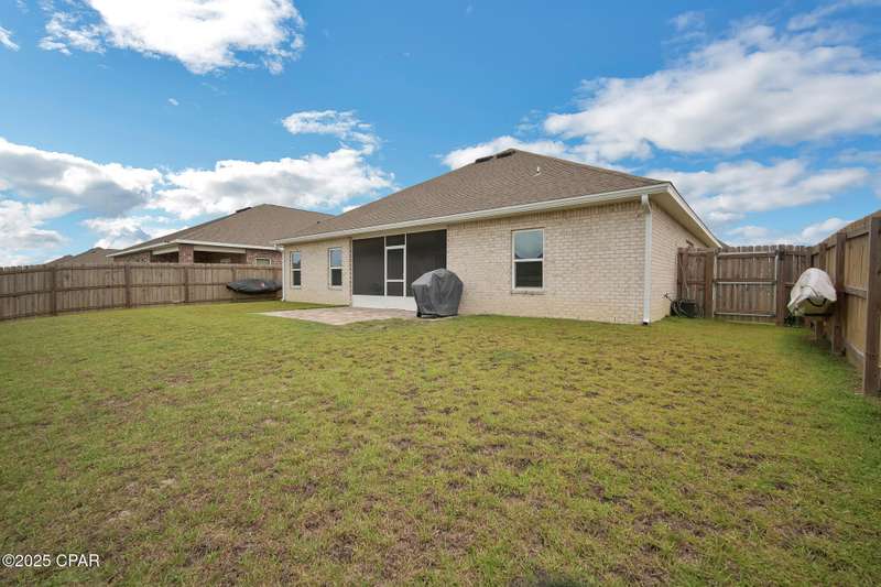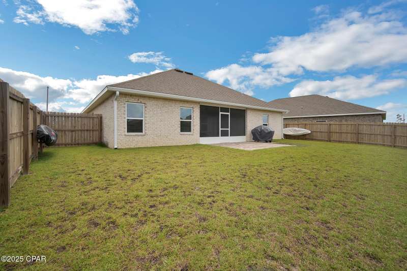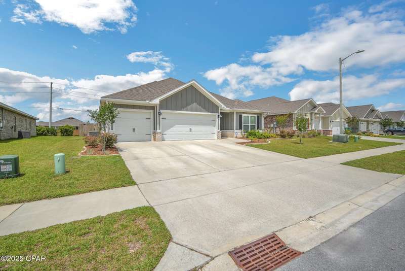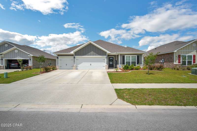 VA Assumable loan for 2.99%!! Buyer must be eligible to assume VA benefits. Seller is offering $5,000 towards buyers closing costs with an acceptable offer!**Welcome to Titus Park!**Discover this stunning ''Destin'' model home, featuring an attractive three-sided brick exterior. This spacious residence has 4 bedrooms, 3 full bathrooms, and a generous 3 car garage making it perfect for families or those who love to entertain.Inside you'll find a bright and airy open floor plan that seamlessly connects the large living room to a modern kitchen, complete with stainless steel appliances, shaker style cabinets, a massive kitchen island, a beautiful back splash, walk-in pantry, and shiny granite countertops. The master bedroom boasts a huge walk-in closet and an en suite bathroom. Enjoy privacy with a split floor plan, highlighting 9' ceilings throughout, LVP flooring, and elegant trayed ceilings in both the living room and master suite. The laundry room is equipped with a brand-new built-in shelving and cabinet system, offering convenience and organization.Outside, you'll find a screened in back porch, perfect for relaxing or entertaining, along with a fully fenced in backyard.Located conveniently off Highway 390 and just north of Highway 231, Titus Park is surrounded by an array of shopping, dining, schools, and parks! It's ideally located between Tyndall Air Force Base and NSA Panama City, with a short commute to each. You're just minutes away from the beautiful North Bay and Saint Andrew's Beaches. Exciting news-Titus Park also features a community POOL opening this summer! Don't miss out on the chance to make this beautiful home your own!