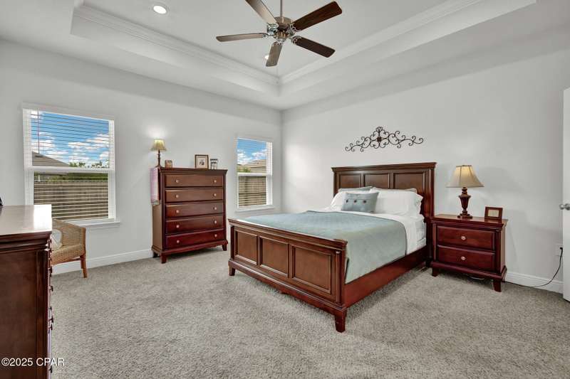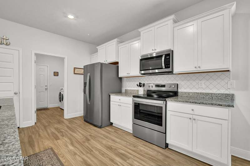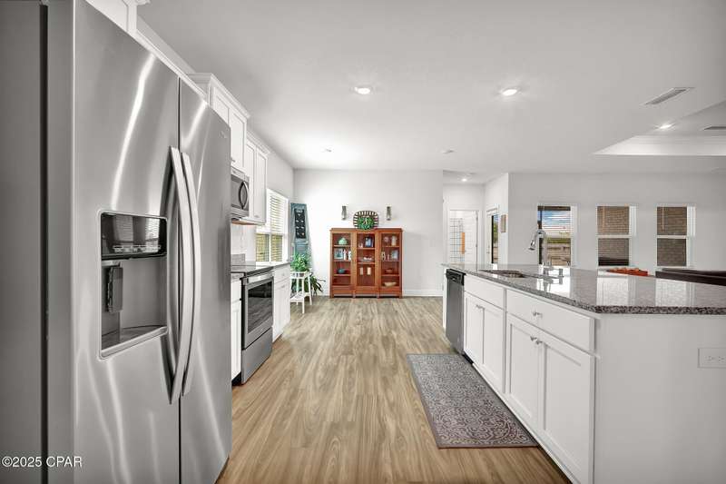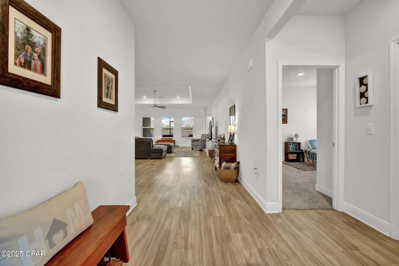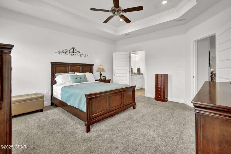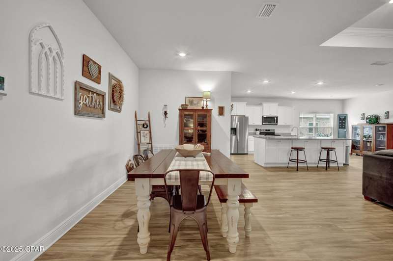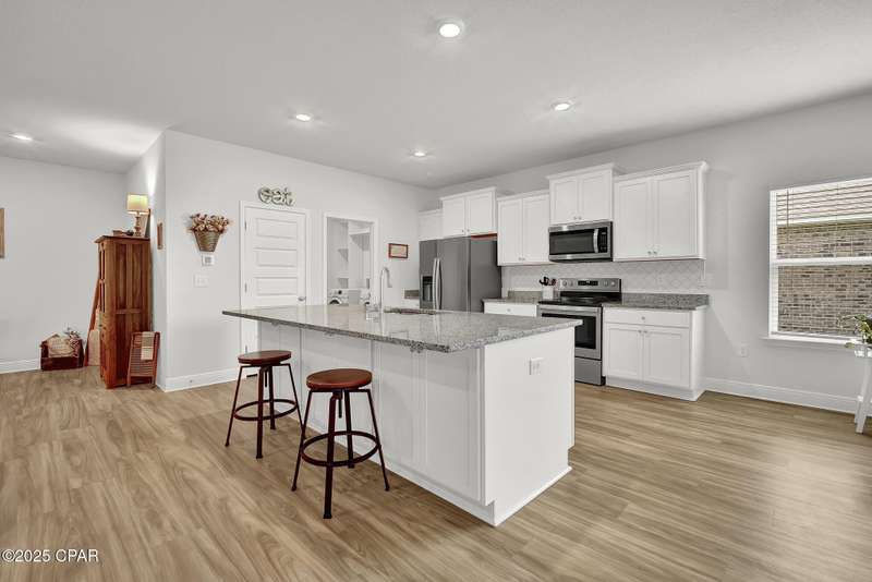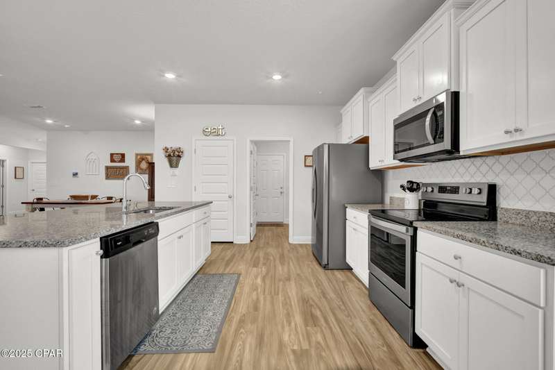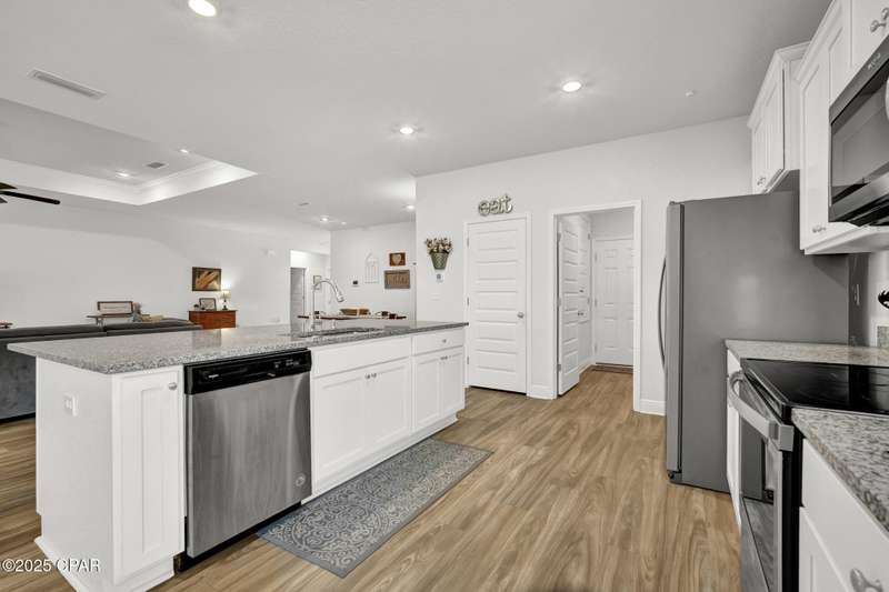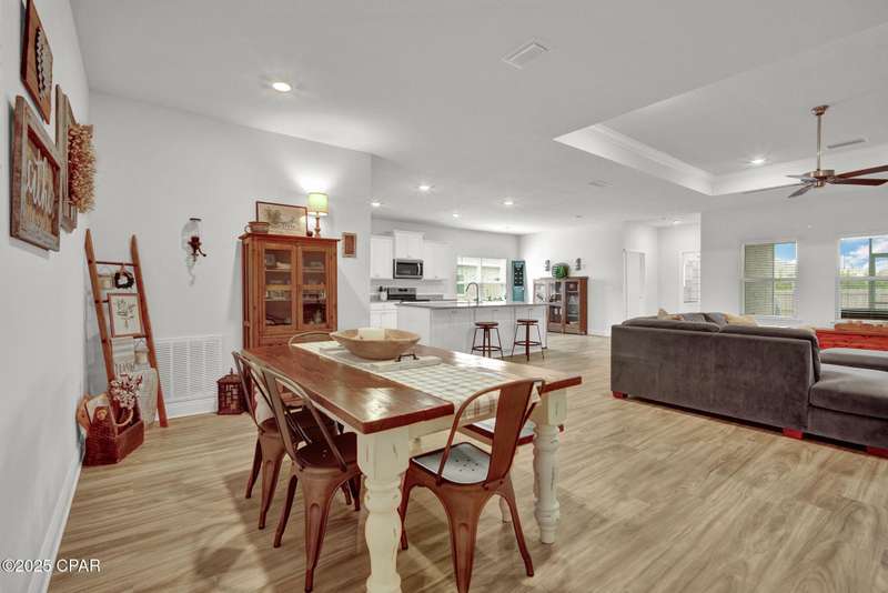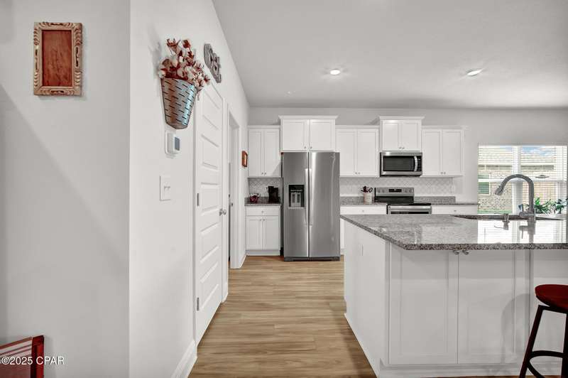 VA Assumable loan for 2.99%!! Buyer must be eligible to assume VA benefits. Seller is offering $5,000 towards buyers closing costs with an acceptable offer!**Welcome to Titus Park!**Discover this stunning ''Destin'' model home, featuring an attractive three-sided brick exterior. This spacious residence has 4 bedrooms, 3 full bathrooms, and a generous 3 car garage making it perfect for families or those who love to entertain.Inside you'll find a bright and airy open floor plan that seamlessly connects the large living room to a modern kitchen, complete with stainless steel appliances, shaker style cabinets, a massive kitchen island, a beautiful back splash, walk-in pantry, and shiny granite countertops. The master bedroom boasts a huge walk-in closet and an en suite bathroom. Enjoy privacy with a split floor plan, highlighting 9' ceilings throughout, LVP flooring, and elegant trayed ceilings in both the living room and master suite. The laundry room is equipped with a brand-new built-in shelving and cabinet system, offering convenience and organization.Outside, you'll find a screened in back porch, perfect for relaxing or entertaining, along with a fully fenced in backyard.Located conveniently off Highway 390 and just north of Highway 231, Titus Park is surrounded by an array of shopping, dining, schools, and parks! It's ideally located between Tyndall Air Force Base and NSA Panama City, with a short commute to each. You're just minutes away from the beautiful North Bay and Saint Andrew's Beaches. Exciting news-Titus Park also features a community POOL opening this summer! Don't miss out on the chance to make this beautiful home your own!