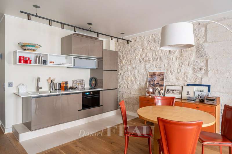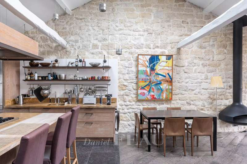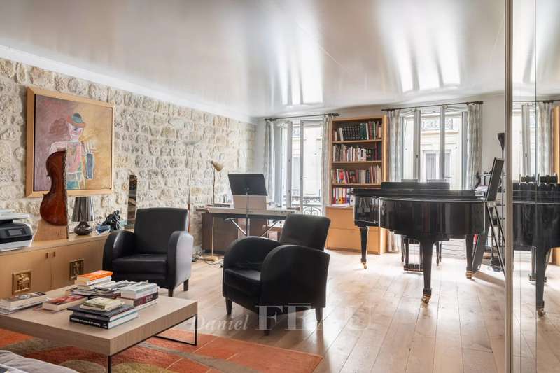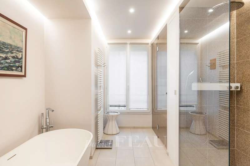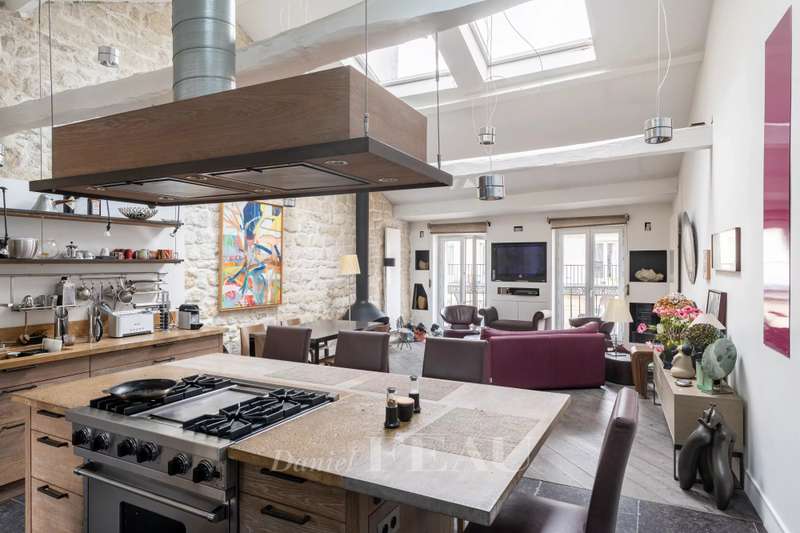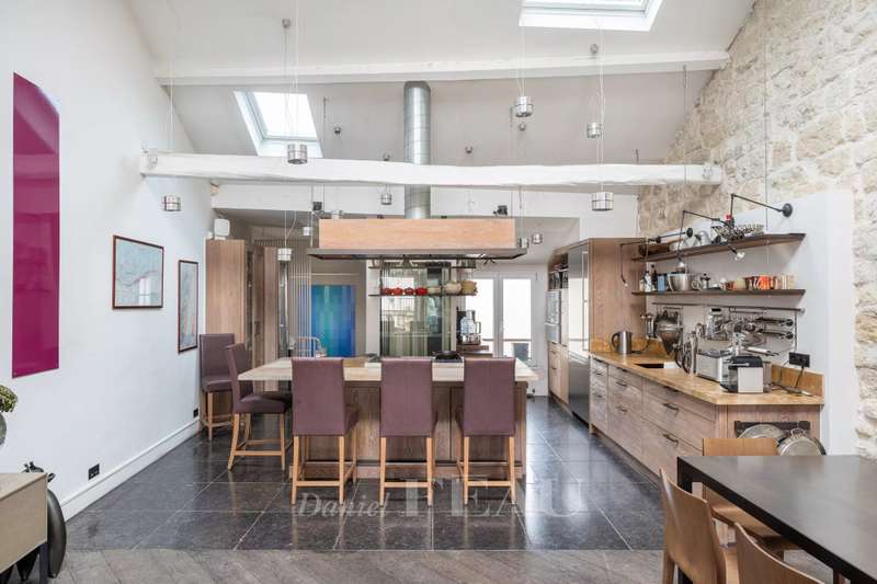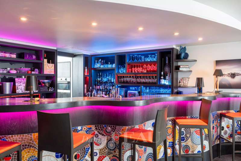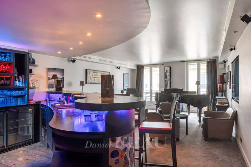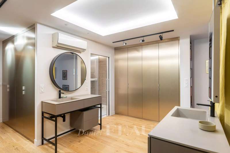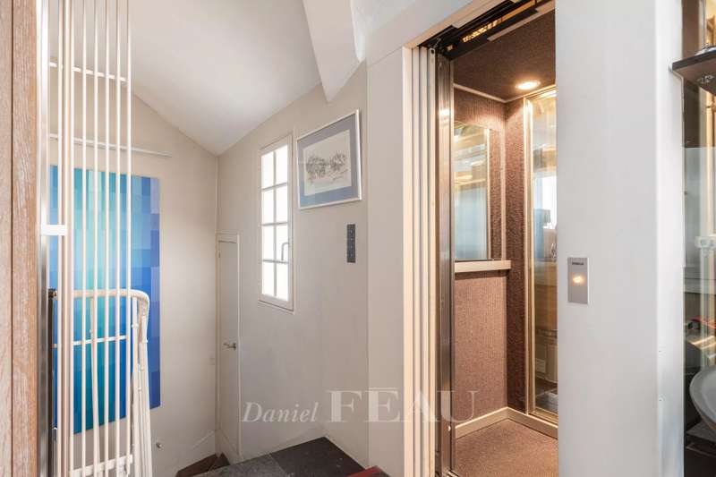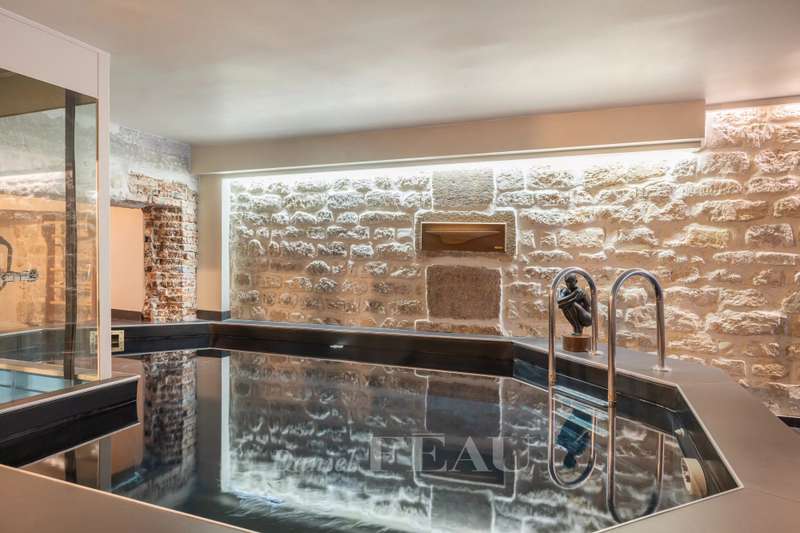 This atypical five-storey mid 19th century property with a lift is located a stone’s throw from Luxembourg Gardens. Offering 427 sqm of floor space and 324 sqm of living space, it includes a ground-floor counter-current lap pool, and access to the lift and the staircase accessing all floors. The first, second and third floors each comprise a spacious bedroom or study, a bathroom and a wc. It would be possible to create two further bedrooms if required. An elegant music room in the style of a piano-bar is on the fourth floor. The top floor includes a superb dual-aspect living/reception room featuring a soaring ceiling, and an open-plan kitchen. On a basement with a utility room and a wine cellar.
