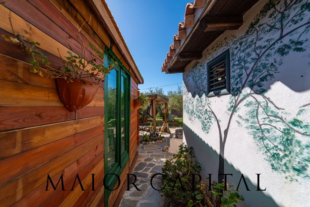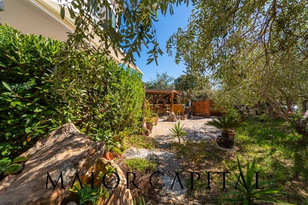 The entrance to the property, enhanced by a handcrafted wooden gate, leads to a large private garden of approximately 150 sqm, which surrounds the house on three sides. This well-kept and completely fenced green space offers maximum privacy and endless possibilities for those who love the outdoors.