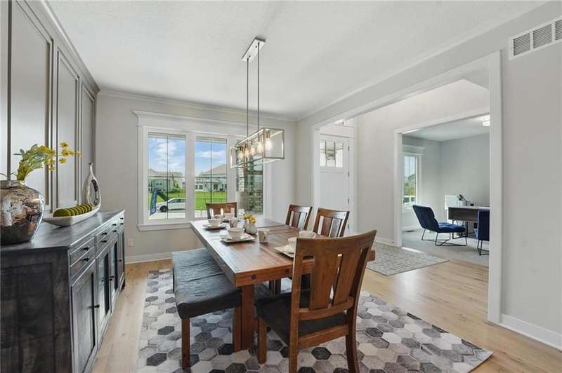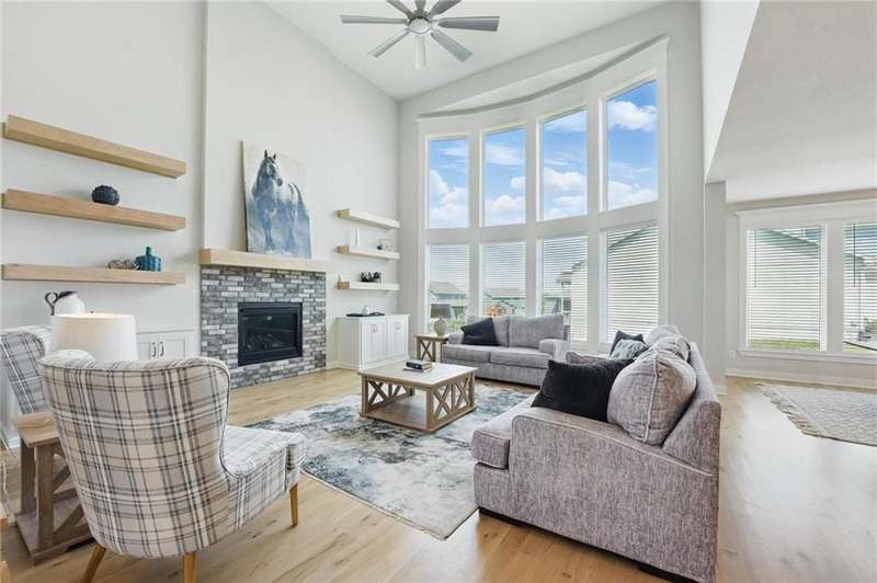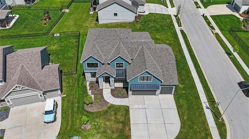 Model Home Now For Sale! Home is Complete & Ready to Move In! Dont miss the opportunity to make this award-winning plan your home! The Jefferson Traditional by Patriot Homes is perfectly situated on a corner lot near the community swimming pool and showcases classic stone and stucco design with several upgrades inside and out. The main level includes a drop zone, laundry room, powder room, well-equipped kitchen, breakfast nook, dining room, study, and great room with two-story bay windows as well as an idyllic master bedroom suite with free-standing soaker tub, walk-in shower with dual shower heads and Bluetooth audio system. An open staircase leads to the upper level offering four bedrooms, three full bathrooms, and second laundry room. This home is nearing completion and ready for your family to turn it into a loving home. Design selections have been completed. Extras enhancing the overall convenience and ease of owning this home include an irrigation system, three-car garage with an opener on the main door, high-efficiency furnaces, whole home humidifier, and 50-gallon electric water heater. Cadence residents enjoy access to a range of neighborhood amenities, including a community pool, winding walking trails, and nearby Platte Purchase Park. Located in the award-winning North Kansas City School District and within Staley High School boundaries, this home delivers an ideal combination of style, location, and livability. Furniture & decor not included. Taxes & SqFt Estimated. Priced below reproduction!