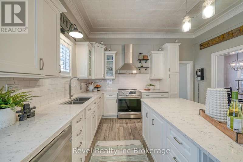 Located in historic North Central Woodstock, just steps from parks, green space, and a splash pad, and within walking distance to the library, and all levels of school. This stunning 3-bedroom, 2-bathroom century home offers the perfect blend of character and modern updates. With two driveways, an attached garage, and bonus storage space, convenience is built right in. The homes curb appeal is unmatched with its charming exterior and beautiful landscaping. An enclosed front porch welcomes you before stepping into the bright, newly renovated kitchen featuring an island, quartz counters, and a practical pantry closet. The main floor also offers a formal dining room, living room, and a versatile additional space that could serve as an office, den, or even a main-floor bedroom. (Has currently been converted into a main floor laundry room). Upstairs you'll find three spacious bedrooms, while the finished basement adds even more functional living space. Hot tub included. (id:7434)