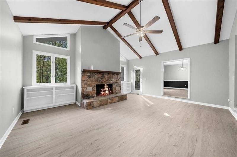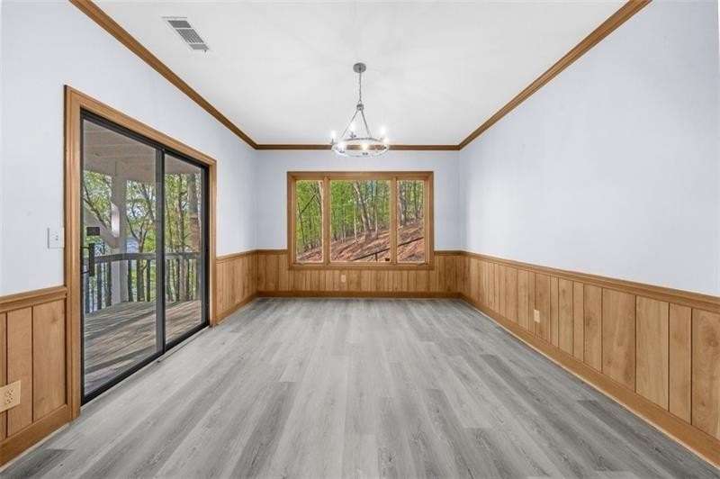 BEST DEAL ON LAKE LANIER - READY TO SELL - MAKE IT A QUICK CLOSE! Rare opportunity to own a one-level home, over finished terrace level, with big water lake frontage at an unbeatable price! No dock but many, many benefits such as picturesque water and natural views, abundance of privacy, fish, kayak and more. Also appealing about this property is the very close proximity to the downtown "historic" Gainesville Square, easy access to jump on I-985 and no HOA restrictions or fees. The home size and ranch style is the perfect primary or secondary residence or rent now and relocate later. Indulge in tranquil mornings and evenings on the deck while sipping your favorite beverage and enjoying the sights and sounds of nature. Laurel Park is only 5 minutes away for launching a boat. It's all about a tranquil and peaceful setting on this north lake peninsula, as the property borders Corps of Engineers land that stretches to the very end of the point - offering extended lake views and privacy. Additionally, the property includes a circular drive and parking pad for multiple vehicles. Interior features include luxury vinyl flooring on both floors; 3 bedrooms on the main floor including a large primary suite and bathroom; 2 additional bedrooms with a Jack and Jill bathroom and double vanity; an open and spacious great room highlighting a gas-logged stone fireplace, and a vaulted wood beam trimmed ceiling; separate dining room adjoined by a large kitchen with new Bosch refrigerator; a Whirlpool oven with gas cooktop, granite counter-tops and tiled backsplash. A finished terrace level with private entrance and deck completes this home and can be used for an apartment or in-law suite. Special features on this level include a wood-paneled family room, fireplace, a home office, an additional bedroom, a work-out room (or 5th bedroom) plus a full bathroom. Step out onto the expansive upper or lower wood deck for morning coffee, afternoon cocktails, and outdoor dining, while listening to the sound of passing boats or watching a picturesque sunset. Other noted features include natural gas connected to the home for gas heat, gas cooktop, and gas logs. This property does not have a private dock but has plenty of lake-frontage. The convenience of the location provides an easy drive to downtown Gainesville, grocery stores and retail shops, public and private schools, a variety of restaurants, Northeast Georgia Medical Center, Brenau University, and the Atlanta Botanical Gardens Gainesville location. Also, only a 30 to 45 minute drive to North Georgia wineries and mountains. No HOA, making this property the ideal location for considering a short-term rental, Airbnb, VRBO. Can't beat the desirable location, privacy, and lake atmosphere at an affordable price. Move-in ready - Bring Offer!