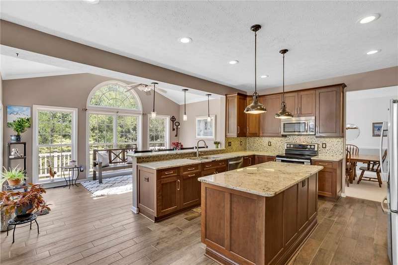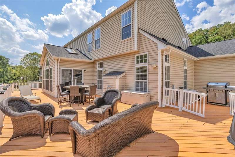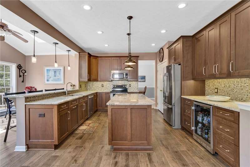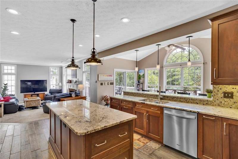 Gorgeous! What a lovely home, on a fabulous wooded lot on a quiet cul-de-sac street! This one has it all! The kitchen has been totally renovated with stunning cherry cabinetry, granite counters, a tiled backsplash and many new appliances. Storage and counter space is abundant with the upgraded soft close cabinetry. Beautiful glazed porcelain flooring runs throughout. A sun drenched eating area is adjacent to the kitchen counter seating and can handle even the largest crowds. The family room is well sized with a fireplace and plenty of daylight. Upstairs the primary suite is quite impressive with views into the wooded rear lot. Three additional bedrooms are well sized with ample storage. The lower level game room offers a television viewing area, a gaming area, a fitness area and opens into the rear yard. Additional storage with custom built shelving is featured here. A full deck spans the rear of the house with a seating area and so much more! Privacy, but close to everything!