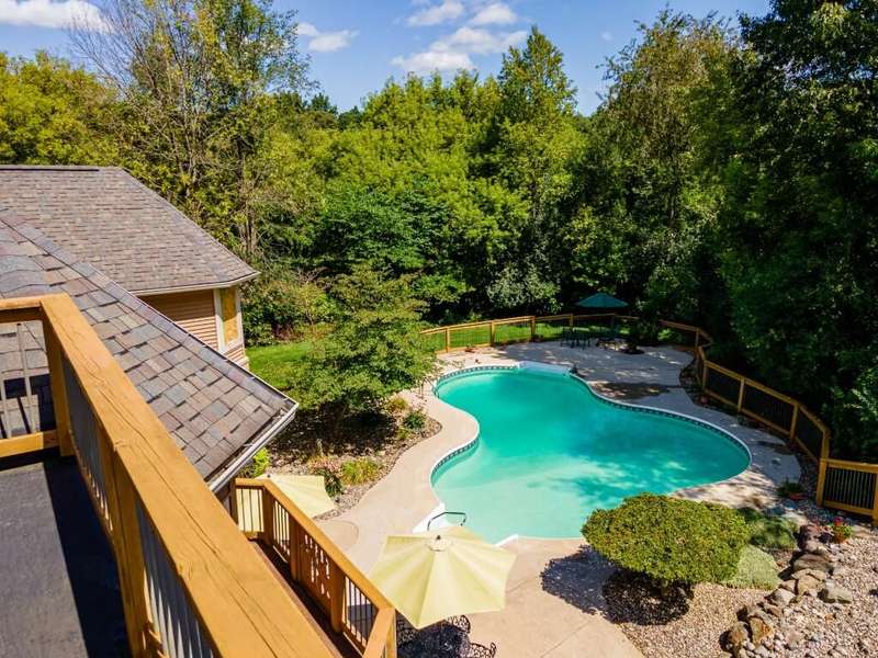 Beautiful custom construction home on over 2 acres in private & coveted neighborhood of Woodlore. You will love the extremely flexible floorplan: main level living w/3BRs & 2.5BAs; an outstanding fin LL for either extended rec room & guest quarters or a completely separate living space w/kitchen, 2BRs's & 1BA, large sitting & eating areas, heated flrs, & private entry w/2 door walls. 2nd level has a large office/flex/bonus room w/door wall to private balcony. Great at-home work options w/main flr study/sitting room & LL office. This home is perfect for year-round entertaining but especially for summer fun w/gorgeous & very secluded inground pool & extensive outdoor living spaces (spacious LL patio, main level patio, covered deck areas). Pool has diving well (w/board) as well as gradual entry steps. Whole-house generator, 2 HVAC & HWH systems-too much to include-see sep list for more! Quiet & peaceful location yet easy access to 2 expressways & Downtown amenities. Brighton Twsp taxes