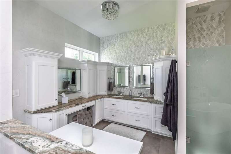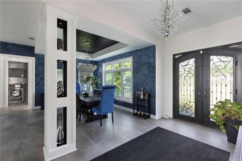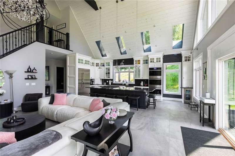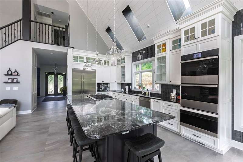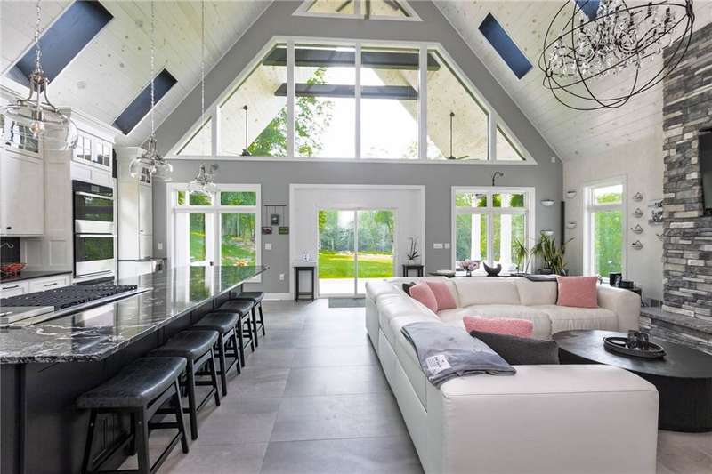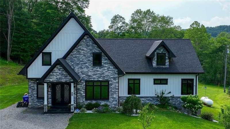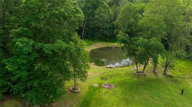 Welcome to this beautifully crafted custom home nestled on 9 acres, complete with your very own stocked pond and inviting fire pit. The perfect setting for country living. From the moment you step inside, you're greeted by a grand foyer that flows seamlessly into a sophisticated dining room, ideal for large gatherings. The heart of the home is the gourmet kitchen, designed with a large center island, Jenn-Air appliances, granite countertops, double ovens, and custom cabinetry. The family room boasts soaring 30-foot vaulted ceilings and a stunning fireplace, creating a warm and open atmosphere. The luxurious main-floor primary suite offers a true retreat, featuring a 2 sided fireplace, a spa-inspired bathroom with an oversized walk-in tiled shower, and a relaxing soaking tub. Step outside to a covered patio perfect for relaxing. Every detail in this home was carefully considered, from the exquisite custom tile work throughout to the thoughtful layout built for comfort and style.