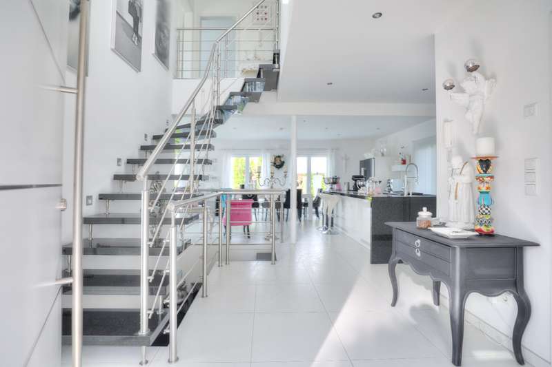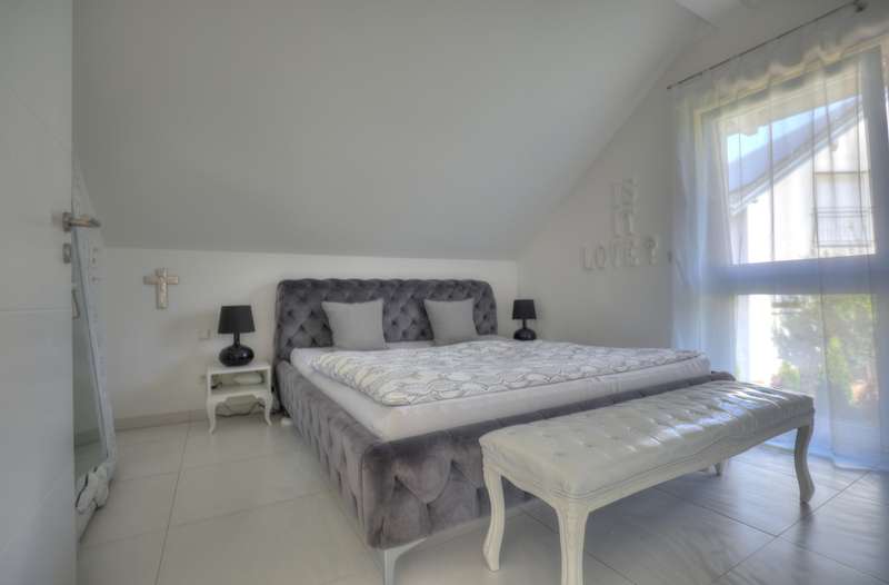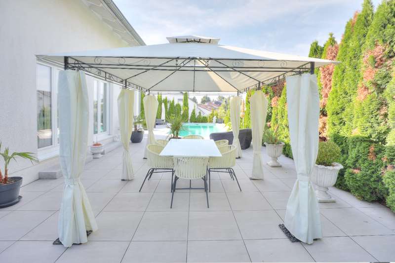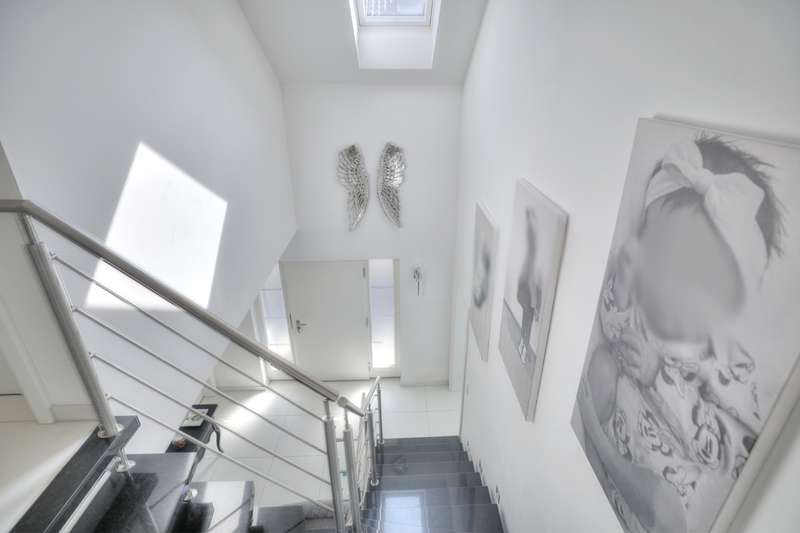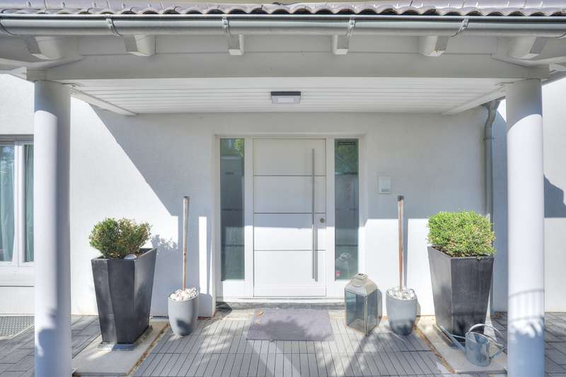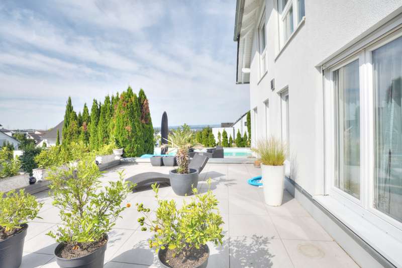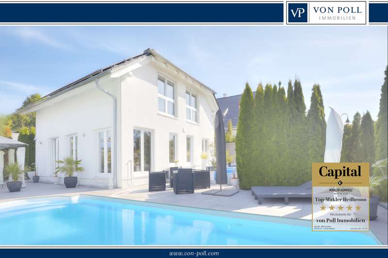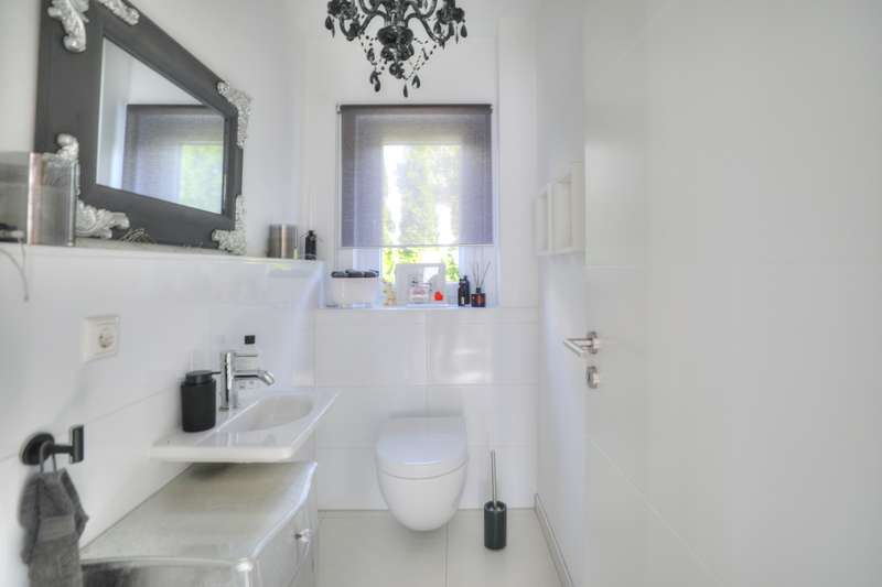 Modern detached house with pool, double garage and high-quality furnishings is looking for a new homeowner. This stylish property from 2012 extends over two living levels plus basement and is situated on a low-maintenance plot. Thoughtfully designed, it impresses with modern living comfort in a sought-after location. High-quality fittings, light-flooded rooms and an intelligent room layout make this feel-good oasis the perfect home for discerning buyers. The open-plan living and dining area impresses with generous space and floor-to-ceiling windows that create a bright, inviting atmosphere. The modern kitchen is equipped with high-quality built-in appliances and a cooking island - ideal for culinary experiences. Directly adjacent is the spacious terrace, which flows seamlessly into the well-kept outdoor area and invites you to relax. With a total of five rooms, including three comfortable bedrooms, the house offers plenty of space for the whole family. Two stylish bathrooms ensure a high level of living comfort, while the underfloor heating creates a cozy warmth in all rooms. A special highlight is the low-maintenance outdoor area with an exclusive outdoor pool, equipped with a counter-current system - ideal for sports enthusiasts. The leisure facilities are complemented by an in-house fitness room. Two outdoor parking spaces and a spacious double garage are available for vehicles. The property is in excellent condition and combines modern living with the highest quality of life. Come and view this exceptional home and see for yourself!