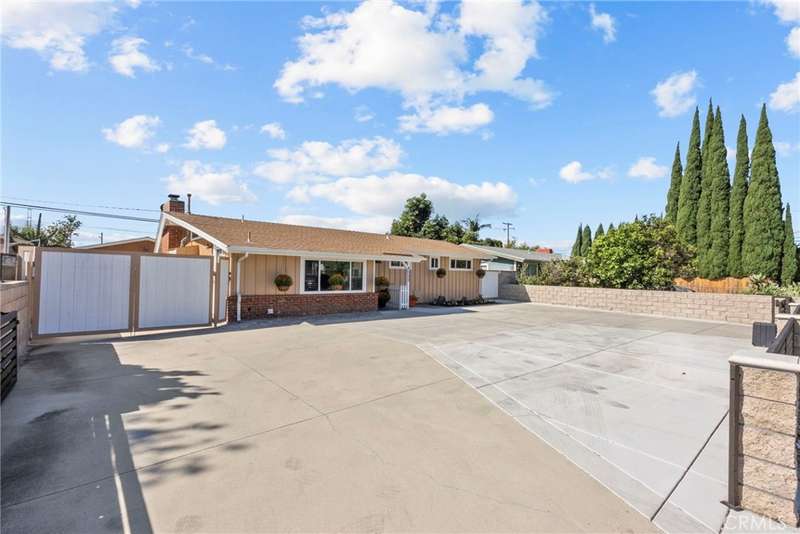 Need room for 16 cars? Then this is your place!! Great space for ADU too! This cozy 3 bedroom 2 bathroom home sits on a large 7680sq ft lot with a newer remote controlled double entrance gate for easy entry and exit. Over $100,000 in upgrades done over the last 10 years!! New paint and New vinyl flooring through out the home. Newer paint and stucco on outside of house. Newly upgraded bathroom, newer dual pane windows, newer roof, newer rain gutters, newer 1" copper water line replacement for fridge, newer garage door, Newer heater and air conditioning unit , newer water heater and expansion tank, Newer dryer and new washer, newer refrigerator, newer stove, newer microwave and beautiful oak cabinets This home has an enormous amount of built in storage and even more in the garage! A privacy gate has been added to separate the front driveway and parking area from the back. This home was well maintained and loved for over 30 years! Just 2.5 miles to Disneyland resort! This home will not last long! You do not want to miss this amazing opportunity!! Agents please see supplementals for home inspection report, termite report, list of upgrades, permits & ADU information (in photos) LOWEST PRICED HOME AVAILABLE IN THE AREA!
