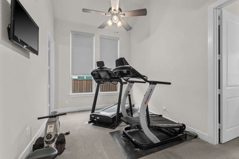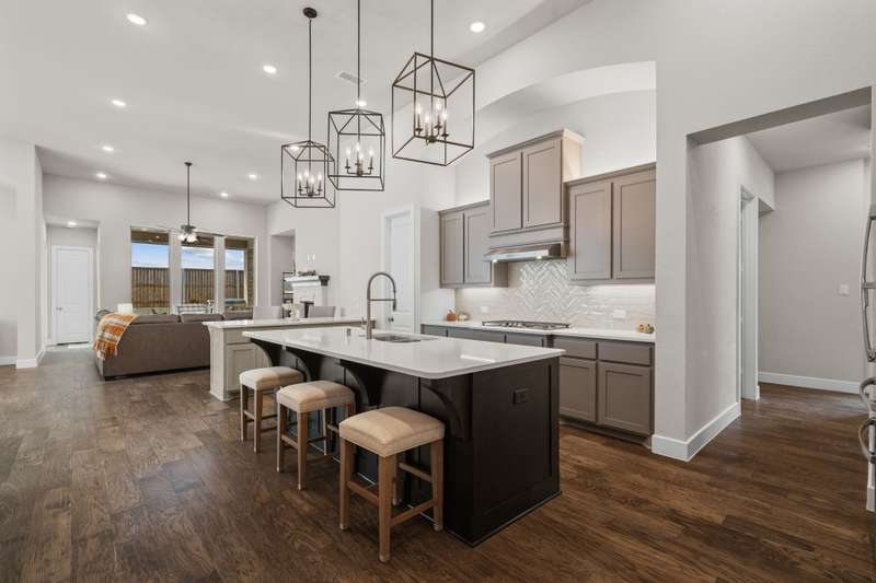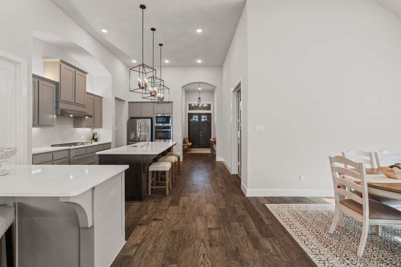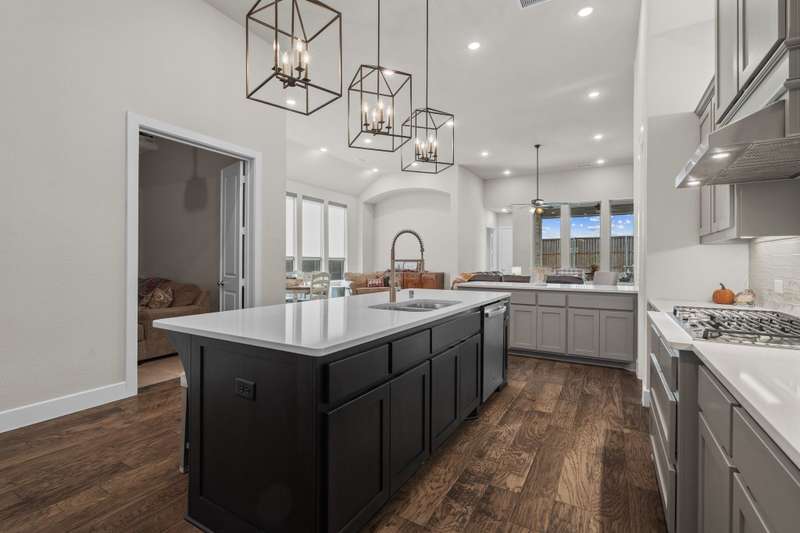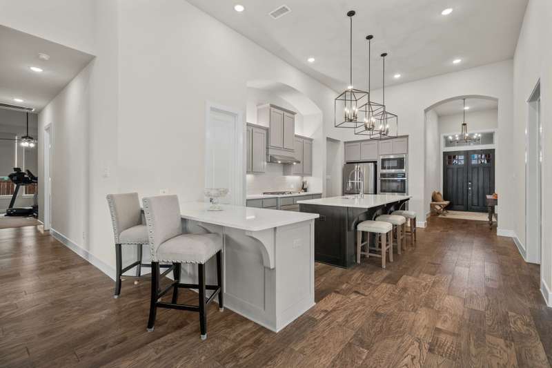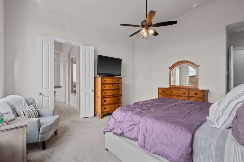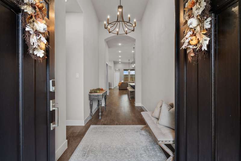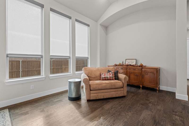 WELCOME HOME to Resort-Style Living in Award-Winning Sandbrock Ranch! This single-story Highland Homes 283 Plan masterpiece blends luxury, comfort, and thoughtful upgrades. Featuring 4 bedrooms, 3 full baths, and a rare 3-car side-by-side garage, its designed for both style and function. Inside, youll find designer finishes at every turn: 8-ft doors, expansive wood flooring, quartz countertops, a raised stone-hearth fireplace, and remote-controlled shades in the primary suite and living area. A wall of windows showcases your private backyard paradise. Step outside to your Texas-sized covered patio with built-in BBQ, an adjoining fire pit, and a sparkling pool + spa with waterfall, fountain, and sun shelfperfect for relaxing or entertaining. The gourmet kitchen is a chefs dream with stainless steel appliances, 5-burner gas cooktop, double ovens, oversized island, built-in microwave, butlers-style cabinet peninsula, walk-in pantry, plus under-over-cabinet lighting. Unwind in the Owners Retreat, featuring a soaking tub, separate shower, dual vanities, and a spacious walk-in closet. For movie nights, the home theater comes fully equipped with a projector and massive screen. Sandbrock Ranch residents enjoy top-tier amenities: the Carriage House Amenity Center with fitness facility, resort pool & splash pad, playgrounds, Scouts Corner Dog Park, and the whimsical Treehouse Adventure Park. A private K12 school is nearby for ultimate convenience. Luxury. Comfort. Recreation. This home has it all. Check out our REEL for a closer look!