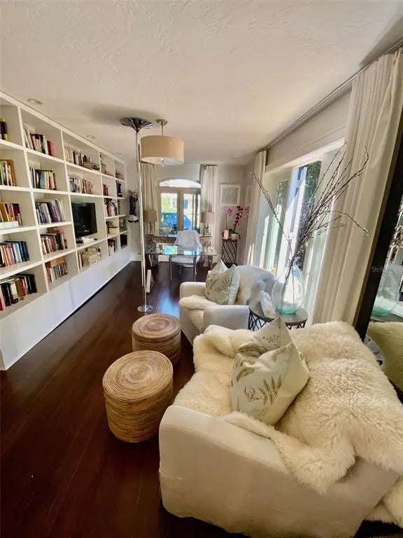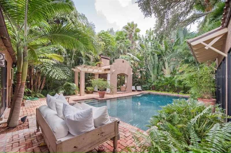 Hidden just beyond a canopy of lush tropical landscape on iconic Brightwaters Blvd NE, this refined 2,800 sq ft courtyard-style bungalow reveals a serene, resort-inspired sanctuary. Through dramatic wrought-iron gates, a beautifully curated interior unfolds—sun-drenched, elegantly proportioned, and designed with an effortless sense of sophistication. The reimagined kitchen showcases a sleek neutral tile backsplash, a generous free-standing island, gas stovetop, Sub-Zero refrigerator, wine fridge, and an impressive walk-in pantry—perfectly blending style with chef-level functionality. Thoughtfully placed windows and French doors invite tranquil courtyard vistas and the soft sound of water features into the home, creating a seamless connection between indoor comfort and outdoor serenity. The expansive primary suite is a private retreat of its own, tucked toward the rear of the residence with French doors opening directly to the lush backyard oasis. Outside, indulge in the tranquility of your secluded cabana with a gas fireplace, charming fountains, and a large pool enveloped by mature tropical landscaping—an idyllic setting for both intimate evenings and elevated entertaining. Additional enhancements include four spacious bedrooms and three spainspired baths with oversized walk-in showers, custom California Closet systems, a full-home stereo system, a decorative interior fireplace feature, a propane gas hot water heater, and a new reverse osmosis and whole-house water filtration system. The home is also pre-wired for an infrared sauna, offering yet another luxurious touch. Situated on one of Pinellas County’s most coveted streets, this exceptional courtyard residence offers an extraordinary blend of privacy, elegance, and resort-style living—certain to captivate even the most discerning buyer.