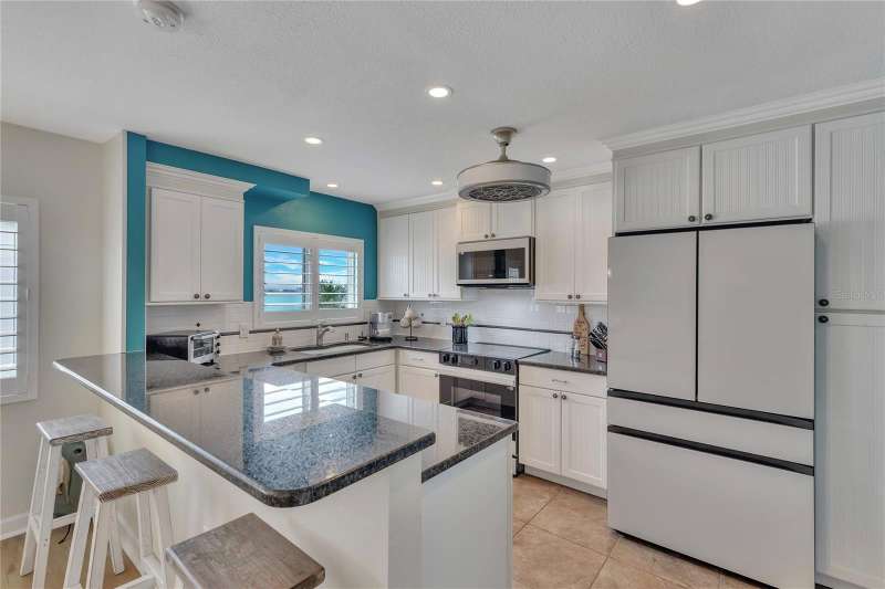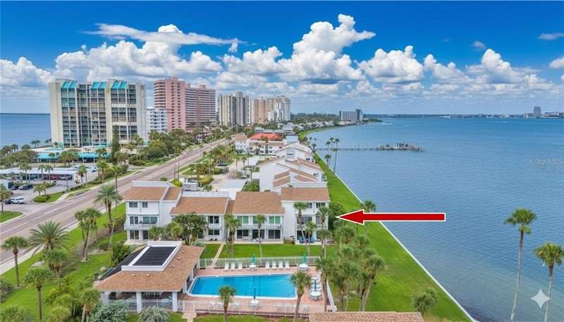 Some homes impress. Others capture your imagination. This exceptional end-unit townhome on Sand Key offers panoramic Intracoastal views from every room and the same refined finishes and elevated lifestyle found in Gulf-front homes across the street—a rare opportunity to experience coastal luxury at a very attractive price point. Sunlight pours through the open-concept living and dining areas, flowing seamlessly onto a spacious balcony with a motorized retractable awning—the perfect place to welcome the day with sunrises over the water and playful dolphins below. Enjoy soothing water views from each of the three bedrooms. The primary suite offers a peaceful retreat with a beautifully appointed en-suite bath, while the other two bedrooms share access to a Jack-n-Jill full bathroom. The clothes washer & dryer are also located on the same bedroom level. Recent enhancements include a NEW ROOF, NEW AC, NEW HOT WATER HEATER, NEW Bespoke® REFRIGERATOR, RANGE and MICROWAVE along with hurricane rated impact WINDOWS for safety and energy efficiency. Within meticulously maintained grounds, enjoy a heated waterfront pool, outdoor fireplace, covered dining and grilling areas, and a kayak launch—all designed for graceful, relaxed living by the water. Covered parking, guest spaces, and a pet-friendly policy-- including large dogs --complete this exceptional offering. Just steps from direct beach access, Sand Key Park, fine dining, boutique shopping, and within easy reach of Tampa International and St. Pete–Clearwater airports, this home is a rare opportunity to live a Gulf-front caliber lifestyle on the Intracoastal—refined, serene, and timeless.