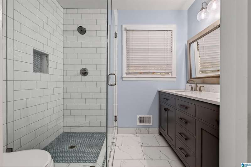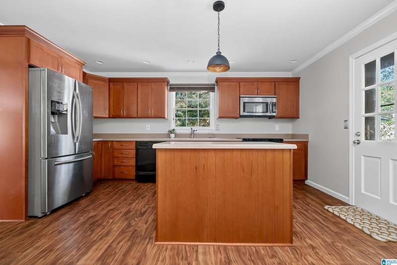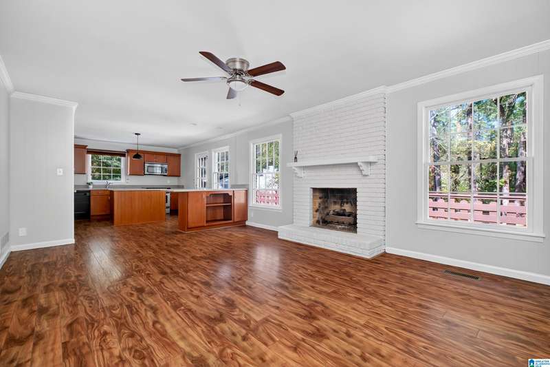 Situated on a beautiful corner lot in sought-after Derby Downs neighborhood, this Vestavia home has so much to offer! Inside, you’ll find inviting spaces perfect for everyday living and entertaining. The main level features a bright living room, dining area, and updated kitchen with stainless steel appliances, island, and breakfast bar opening to a cozy family room with a brick fireplace. The primary suite offers a refreshed bath with quartz, tiled shower, and generous closets. The basement includes a den with 2nd fireplace, an additional full kitchen, bedroom, bath, and bonus room ideal for an office, gym, or 4th bedroom. Enjoy the large covered deck overlooking the fenced yard—perfect for gatherings! Updates include new roof with 10-yr warranty, exterior paint, carpet, fence, basement flooring, condensing unit, light fixtures, chimney cap, concreted deck posts, mailbox and post, and electrical upgrades. Two private entrances make it great for guests, in-laws, or rental income!