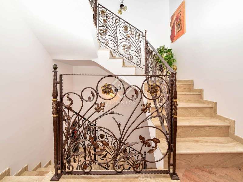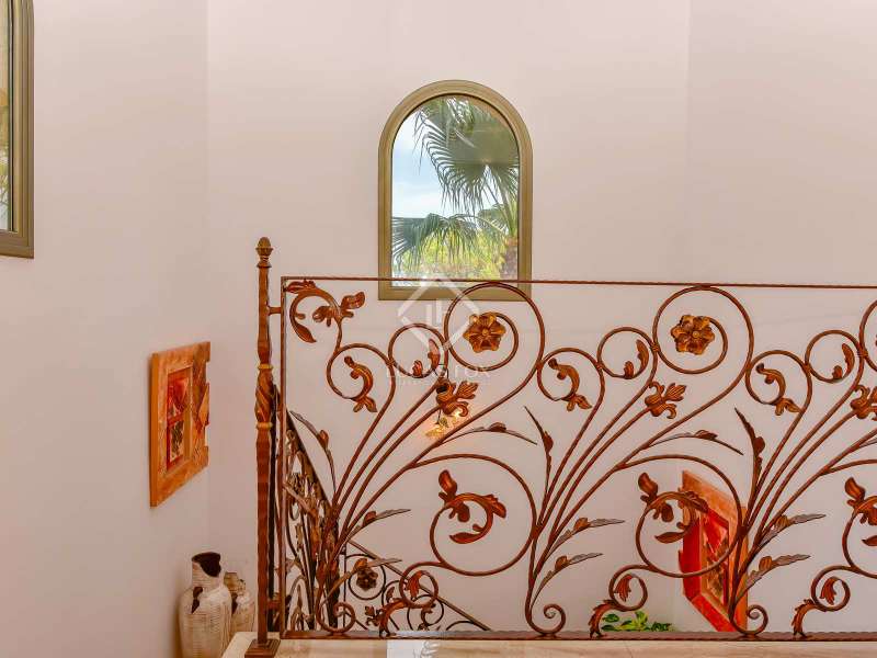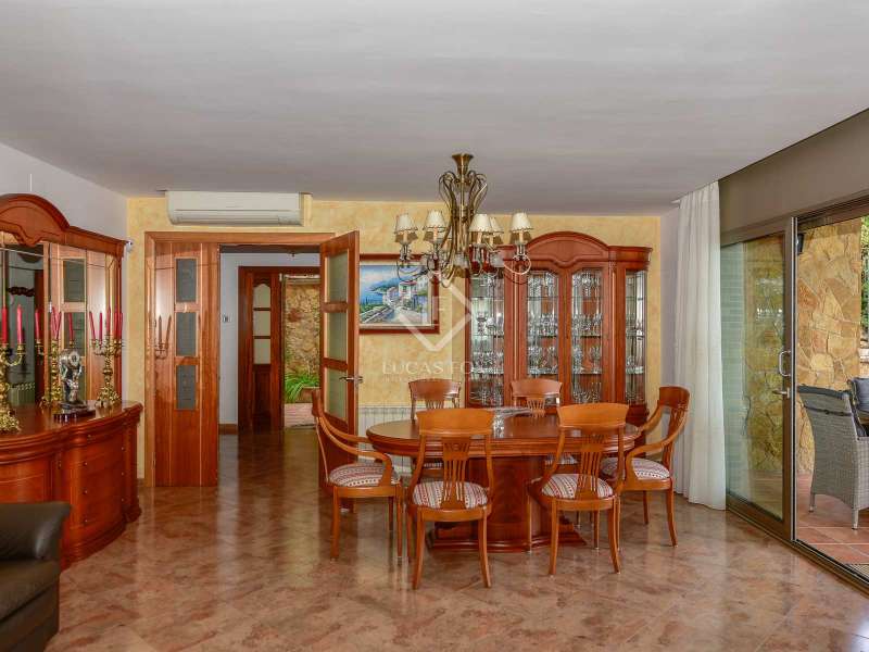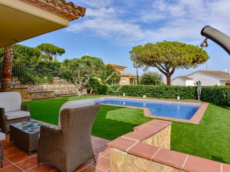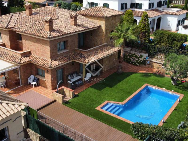 Lucas Fox presents this 494 m² villa that sits on a 587 m² plot . This house is in perfect condition and allows us to enjoy partial views of the sea. The property is located near the centre of Platja d'Aro, with access to the restaurants in the centre area and its shops on foot. Villa Esmeralda has a fantastic exterior area surrounded by olive, avocado and lemon trees with several terraces and a saltwater pool. Upon entering the house, we see a spacious entrance hall with a guest bathroom , then we access a living-dining room with large windows and right next to it, a fully equipped open kitchen, with Bosch brand appliances . In that same kitchen, there is access to the laundry room room and the pantry. On that floor, there is the first double bedroom with a bathroom with shower and then a second double bedroom with a dressing room and private bathroom. We go up to the first floor by the marble stairs and we find three double bedrooms, a shower room. Next, there are two double bedrooms with their respective private bathroom , with shower. Going down to the lower ground floor, we arrive at the garage with capacity for three cars. On the same floor, there is a bathroom with a shower, a gym room with a sauna, a storage space and the machine room. The whole house is equipped with wall heating with a diesel boiler, double-glazed windows, electric shutters and reversible Mitsubishi air conditioners. Do not hesitate to ask us for more information and contact us to make a visit.