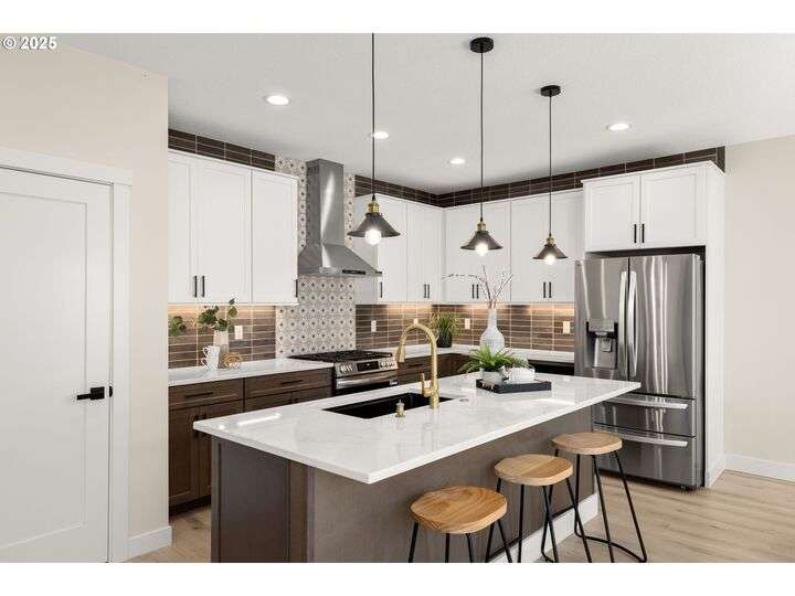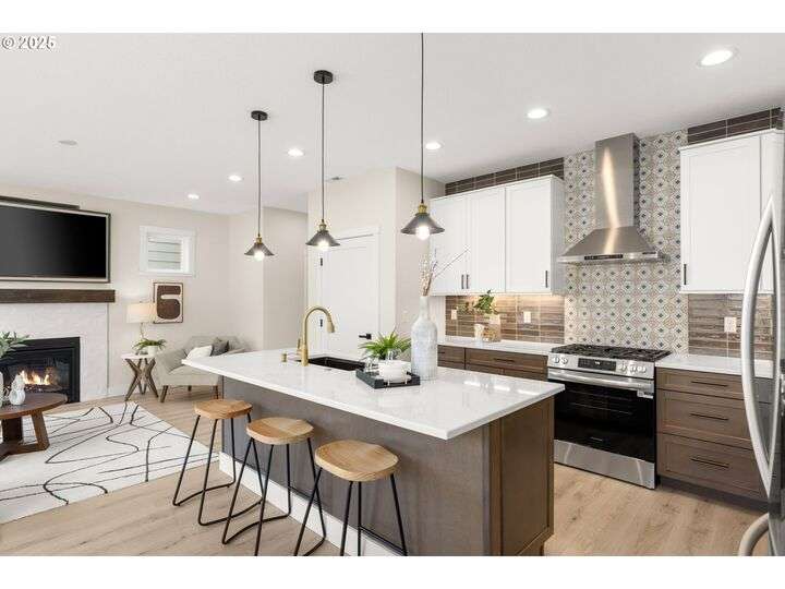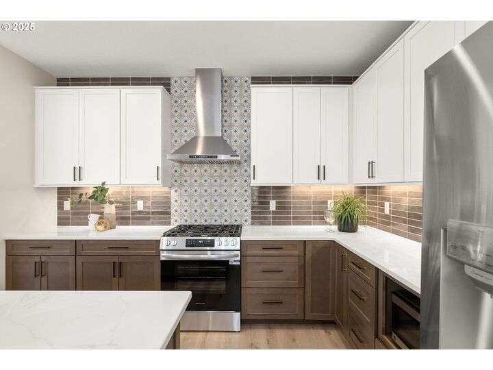 Exceptional location just 5 minutes from I-5, Hwy 217 and Bridgeport Village restaurants and shops! One of the last available lots in Brookside this thoughtfully constructed new home is ideally situated at the very end of quiet street with extra parking. Complete and move in ready with abundant upgrades including full tile surround in tub/shower, Carrier 96% high-efficiency furnace, central AC, fresh air energy recovery ventilator(ERV), LG refrigerator, gas range, microwave, 65 inch LG 4K smart TV and LG washer/dryer. Walls of windows with sunset views flood natural light throughout the gracious primary suite. Included in the primary suite you'll find a walk-in-closet with built-in drawers, spa-like bathroom and additional sitting area large enough for your home office. Entertain the whole family in your oversized bonus room with vaulted ceilings and bright south facing windows. Fully fenced and landscaped yard is designed for low maintenance with ever-green synthetic turf, concrete patio and paver hardscape. Special financing available upon request.