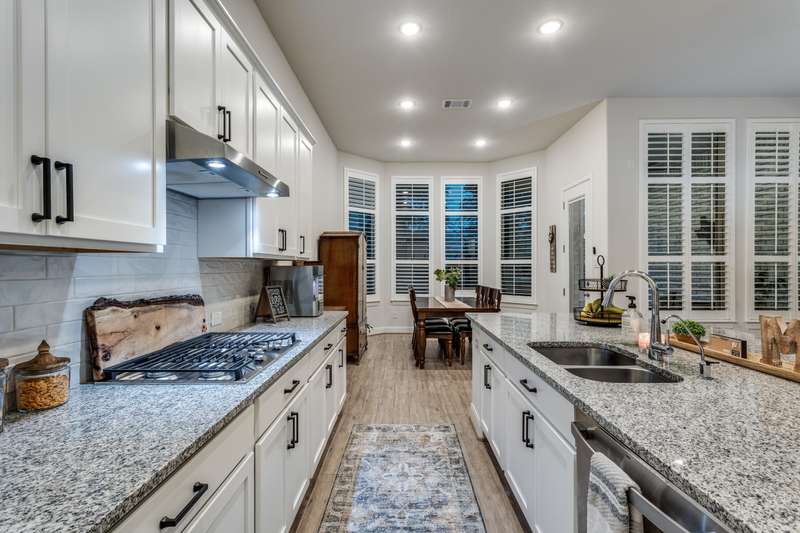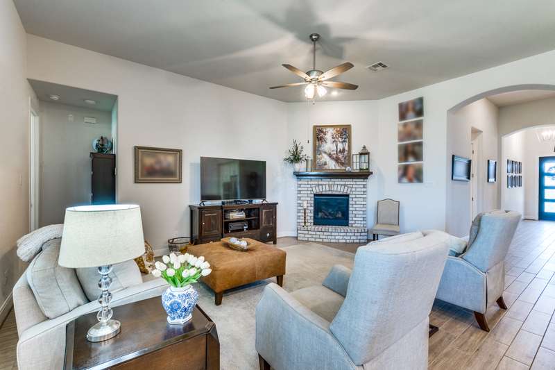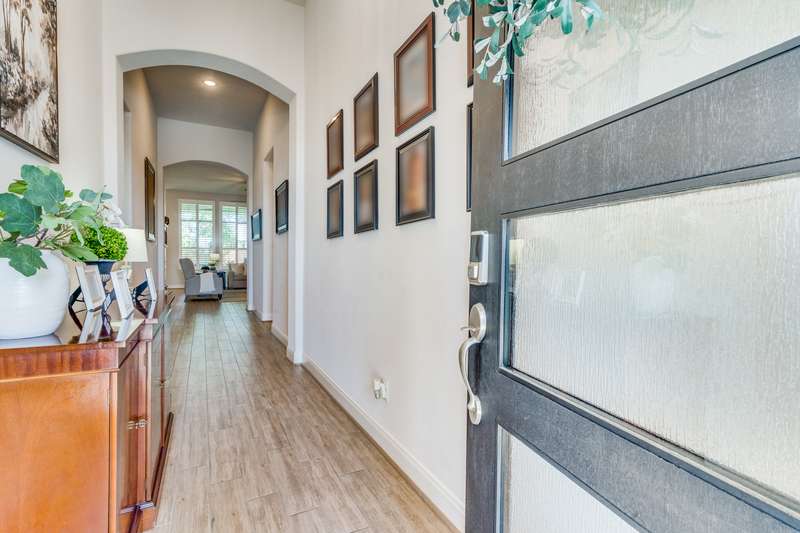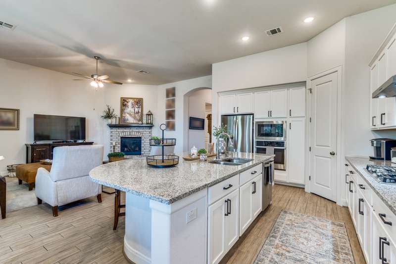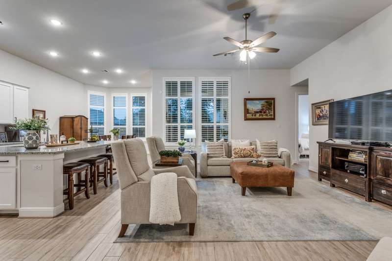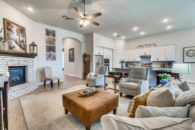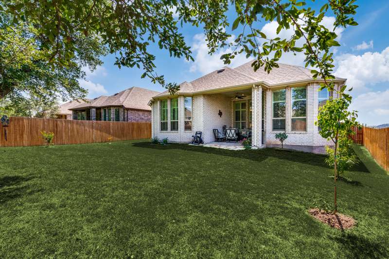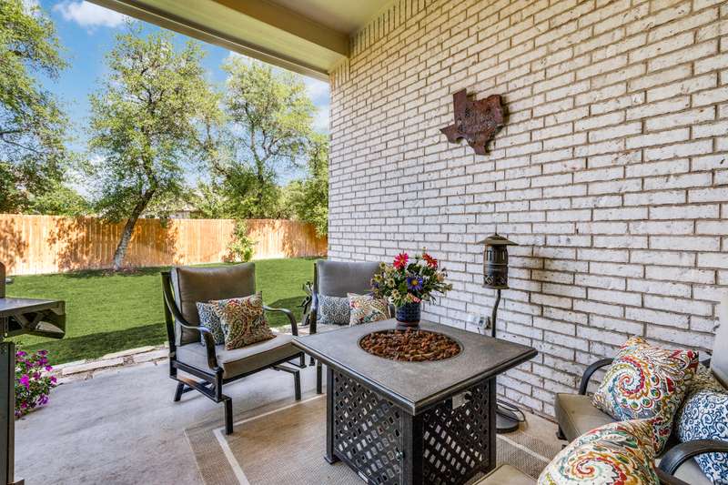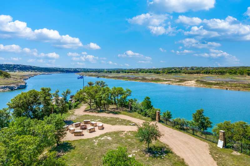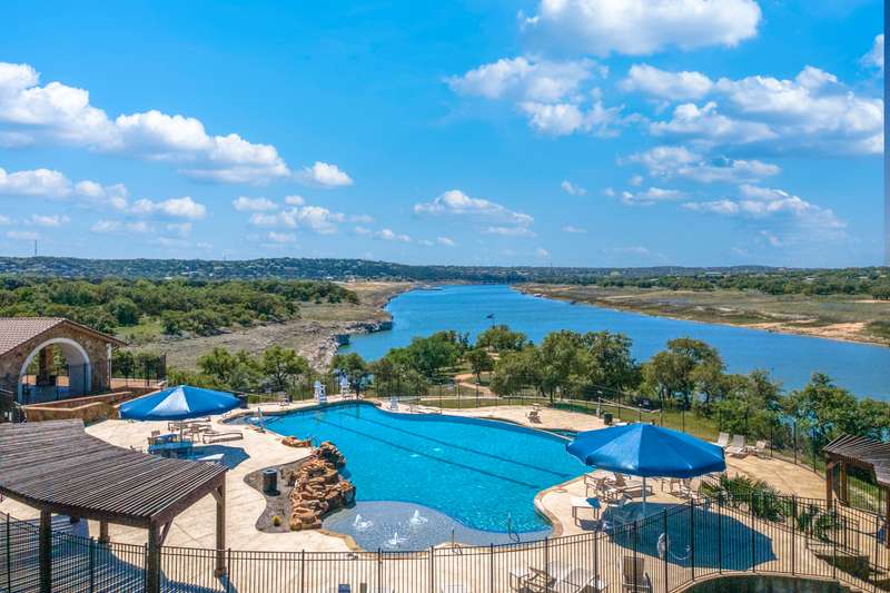 NEW PRICE!! Don't miss seeing this one story award winning Amberley plan Highland built home in the sought after community of Lakeside at Tessera on Lake Travis! This bright and beautiful 4 BR/3 bath home is situated on a premier elevated lot across from a greenbelt and located in a quiet section of Sunrise Ravine Pass. The expansive covered front porch and elevated lot with pretty landscaping gives this home one of the most appealing curb appeals! The inviting entry welcomes you into a spacious great room with ample natural light and a corner brick gas fireplace with electric switch for easy use. The upgraded kitchen has plenty of storage, recessed lighting, stainless steel appliances, granite island, and a large pantry. The dining area overlooks the treed backyard with a nice sized back porch, oak trees, and fruit trees. The primary bedroom has elevated ceilings, bump out area for extra square feet, lots of windows with plantation shutters, wood-look tile floors and an en~suite bath with double vanities, make-up area, garden tub, and a separate shower. Wood-look tile floors thru-out, except upgraded carpet in the secondary bedrooms. Plantation shutters and custom baseboards thru-out the entire home. Need an oversized garage? This home has it! 3 car spacious garage with 3 overhead storage racks, water softener, and a 20 amp outlet. Tankless water heater, sink in laundry room, full sprinkler system. Easy to show! Seller is listing agent. Be sure to check out the beautiful community pool overlooking Lake Travis, playground, private boat ramp, picnic area, trails and more! - 10/4/2025 3:16:23 AM