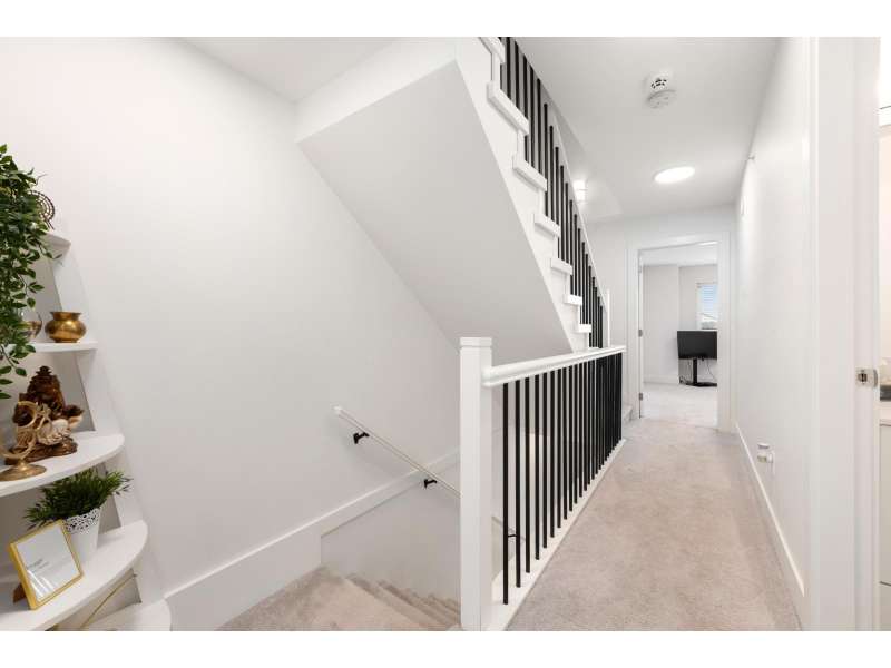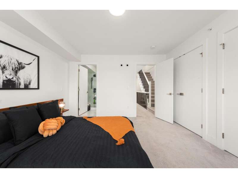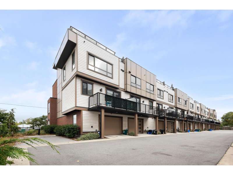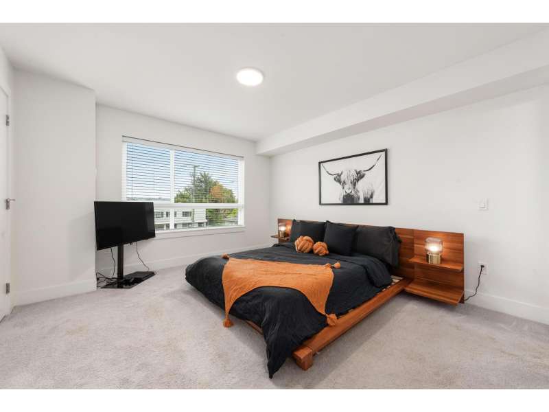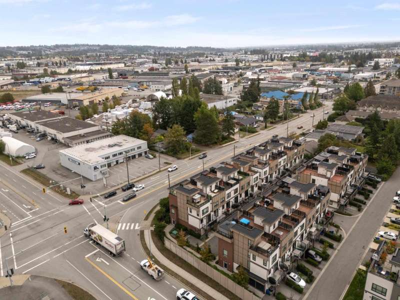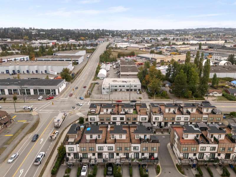 Welcome to Winston Terraces - a boutique collection of 26 thoughtfully crafted homes in the heart of Langley. This modern 2-bed, 3-bath townhome blends contemporary design with everyday comfort. The main floor features an open-concept layout with high ceilings, rich laminate flooring, & a stylish kitchen complete with quartz countertops, stainless steel appliances, & an oversized island perfect for entertaining. You'll also love the added comfort of air conditioning during the warmer months. Upstairs, enjoy two spacious bedrooms, including a bright primary suite with its own ensuite bath. Head up to your massive rooftop patio for morning coffees, sunset dinners, or weekend BBQs - an entertainer's dream! Ideally located just minutes from downtown Langley, shops, dining, parks, & Fraser Hwy, this home truly delivers the best of urban convenience & modern living. (id:58403)