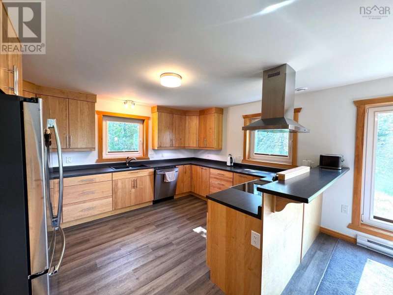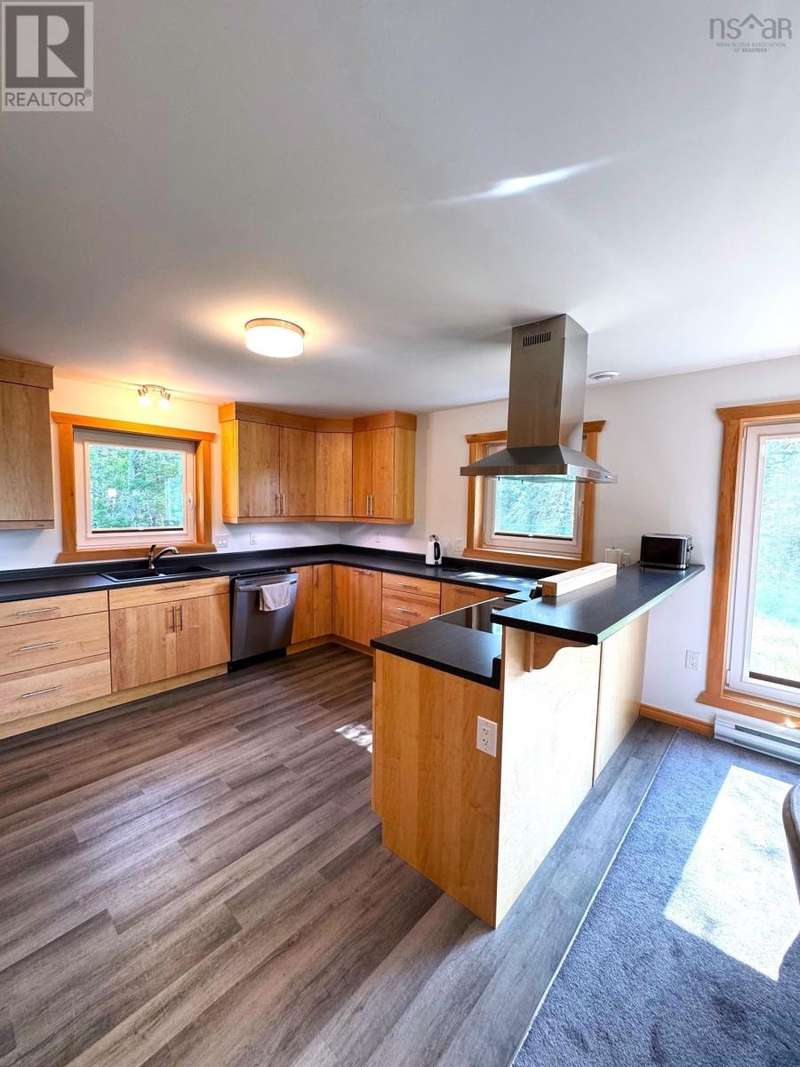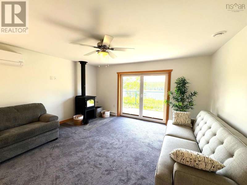 Beautiful Newly Built Bungalow Modern Design with Waterfront Access As marked on the map, the upper portion of the large lot would make an excellent second building site, approx. 2.29 ac This stunning, newly built bungalow combines modern design with natural surroundings, offering privacy, functionality, and exceptional views. Located in a spacious subdivision, the property includes deeded access to several boat launches across Cape Breton, providing convenient routes to the river, Bras dOr Lake, and the ocean.Situated near the point where the river flows into the ocean, the property enjoys a storm-protected location while still offering direct ocean accessjust a short boat ride away.Inside, the home features large Polytec windows with breathtaking river views. The modern design emphasizes clean, straight lines, complemented by an open-concept layout that connects the kitchen and living room. A woodstove adds warmth and charm, making it the perfect place to relax on cooler evenings. The master bedroom stands out with its generous wall-to-wall closets, and all bedrooms enjoy serene river views.The bathrooms are spacious and contemporary, including a convenient guest half-bath. A unique highlight is the private bedroom suite, designed like a self-contained apartment, complete with its own sitting area, bedroom, and a bathroom featuring a walk-in showerideal for guests, teens, or use as a home office.The exterior is finished with durable CanExel siding and a long-lasting metal roof for low-maintenance living. The river is known locally for its excellent fishing and is a fantastic spot for kayaking. A short ride downstream leads directly to the ocean, making it perfect for boating enthusiasts with smaller powerboats. Located just 10 minutes from Port Hawkesbury, you'll have easy access to all essential amenities, including grocery stores, banks, restaurants, a large gym, arena, and building supply stores. The Strait Richmond Hospital is only 5 minutes away (id:2494)