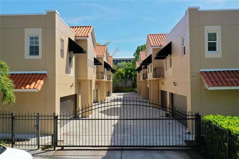 Located in beautiful South Tampa, this townhome will satisfy your modern urban living needs. Beautifully built and maintained with block construction, 11 ft ceilings, hardwood flooring on the first floor, carpet on 2nd, crown molding throughout, and recently painted. The open floor plan with a family room and dining area is versatile but still comfortable for entertaining family and friends. The kitchen comes with granite counters, new sink, and wood cabinets with enough space for your inner chef. French doors lead out to a small patio area. Upstairs the bedrooms are split plan with the master suite that has ample room for a sitting area or exercise equipment and en suite bathroom comes with dual sinks, separate shower and tub. At the end of the hall are two additional nice sized bedrooms and 2nd full bathroom. There is no more parking on the street because this townhome comes with a 2 car garage. Gated community and within minutes to all South Tampa has to offer, trendy & upscale dining, boutique shops, Bayshore Blvd and Water Street.