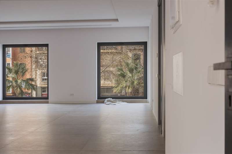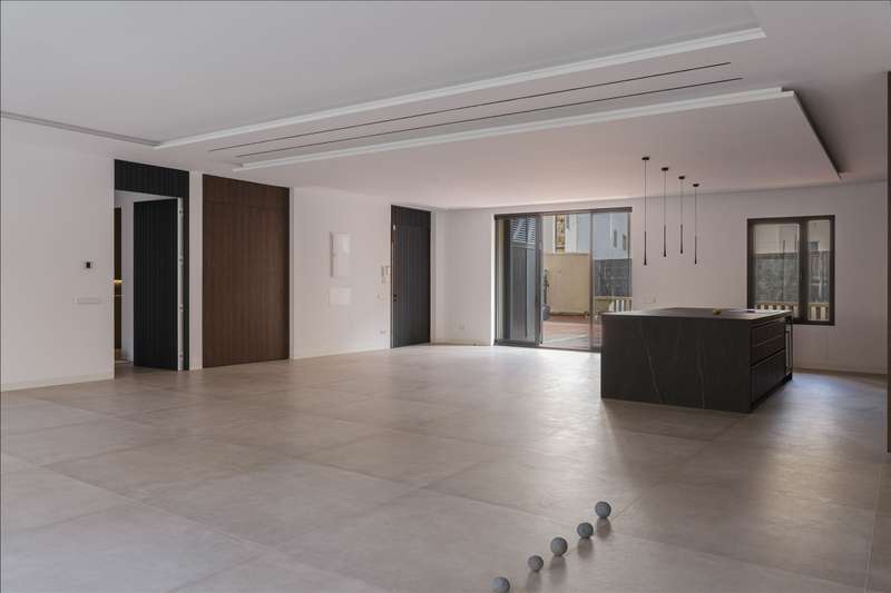 This spacious apartment of 277 sqm and recently refurbished with high quality materials also has a terrace of 130 sqm with enormous potential: a real privilege in the centre of the city. The well-known Avenidas in the centre of Palma are a strategic route due to their connection and proximity to the old town as well as to the bay of Palma. The area is equipped with a wide network of public transport services, shops, supermarkets and restaurants, which provide great comfort. This sober and sophisticated dwelling is located in the corner of the building and offers a well thought out distribution in which all its rooms are exterior facing the street. Its large windows provide a unique urban character and great luminosity. The entrance leads to a large living-dining room which integrates a spacious open plan designer kitchen with its island and an area that could be used as a reading or office space. The only corridor leads to all bedrooms, the bathrooms and the laundry room. The first b