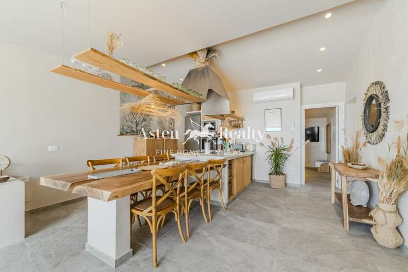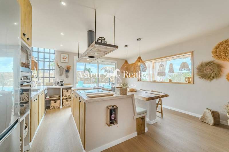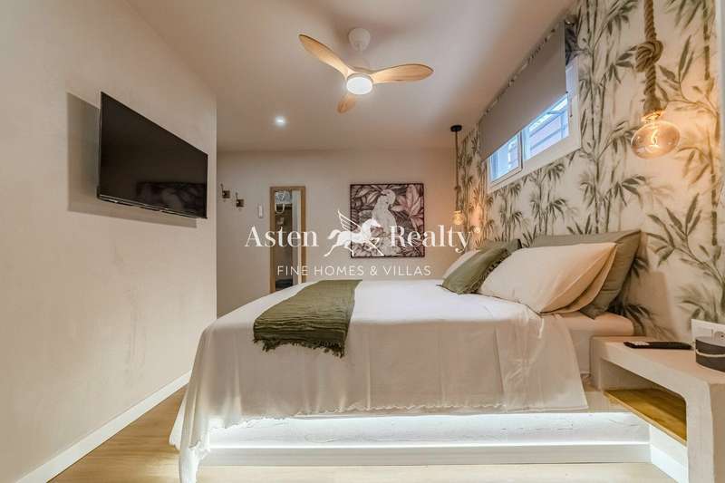 Both homes have completely independent entrances, ensuring total privacy for owners and tenants. Additionally, the villa offers standout features such as air conditioning in both units, fully furnished and equipped, direct access to a heated community pool right in front of the property, a wooden auxiliary house set up as a laundry area, and two private parking spaces.