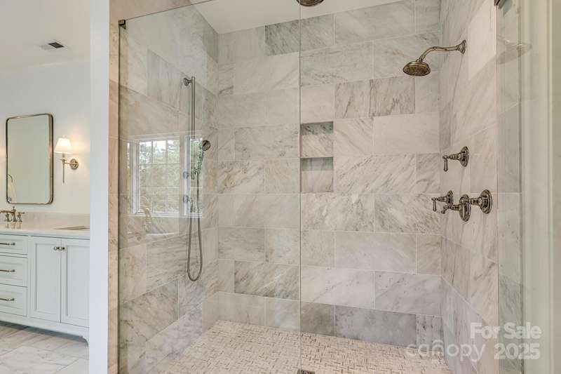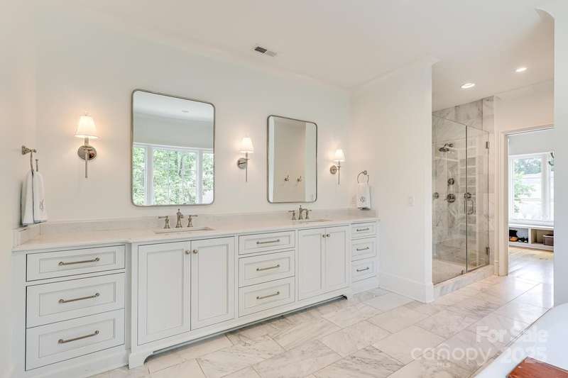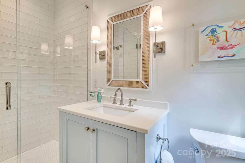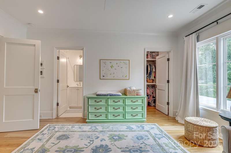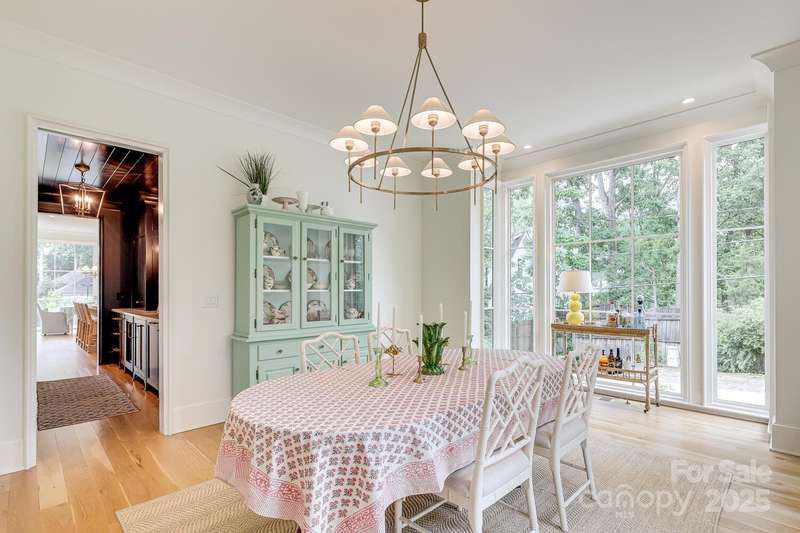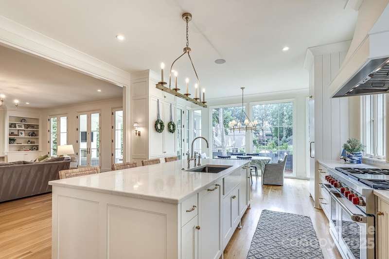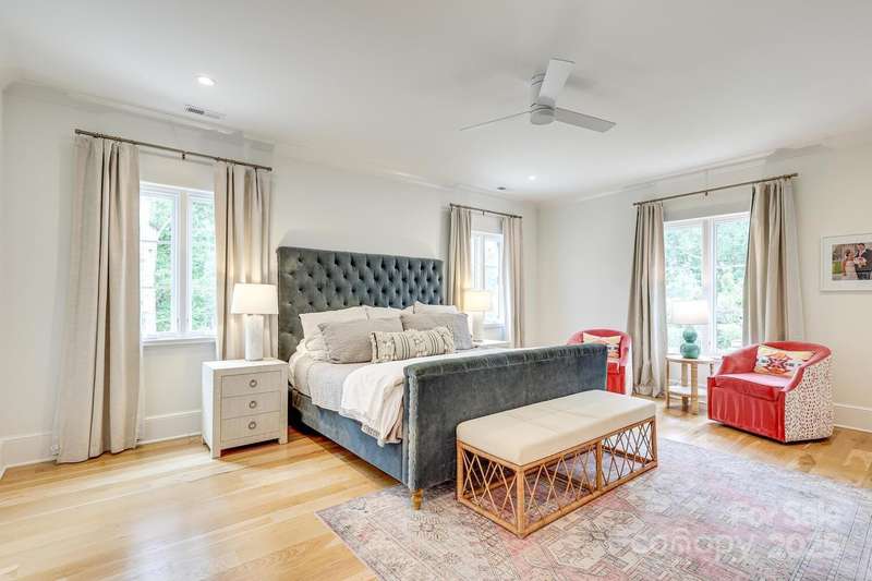 Exceptional 2022 build by Whittington Builders, thoughtfully designed by Greg Perry and located on a quiet block in the heart of Cotswold. Offering timeless style, high-end finishes, and beautifully designed living spaces. A gracious foyer opens to elegant dining and living rooms. As you would expect, the chefs kitchen is amazing: custom cabinetry, premium appliances and a wet bar/butlers pantry contributes to easy living with second built-in refrigerator, dishwasher & ice maker. Friend's side entrance, mud room w/ built-ins adds function and style. Light-filled family room and separate breakfast area open to a covered bluestone porch with fireplace and a flat, fenced backyard. A private study tucked between main living spaces offers flexible uses. Upstairs features primary suite, three secondary en suite bedrooms, and laundry. The third floor offers a bonus room, 5th bedroom, full bath, flex space, and conditioned storage. All just minutes from Uptown, SouthPark, and Plaza Midwood.