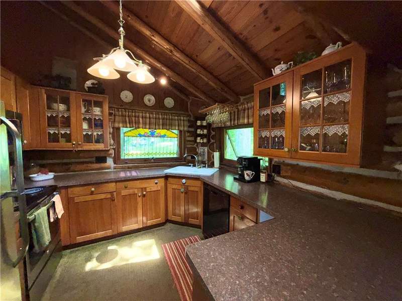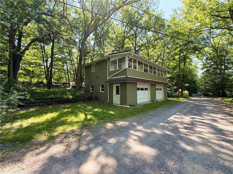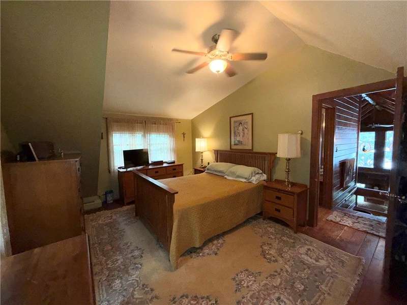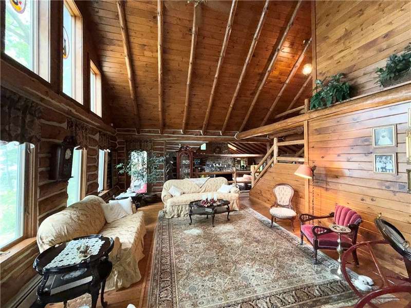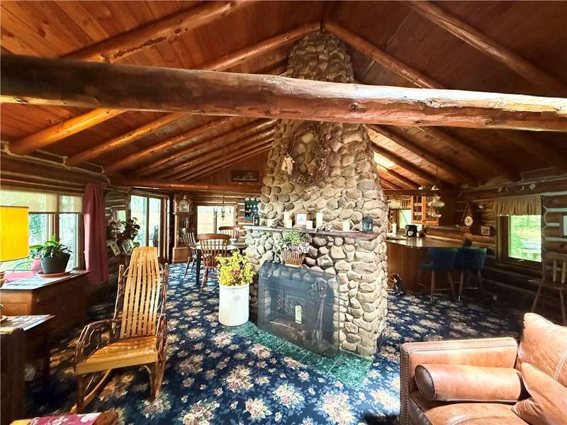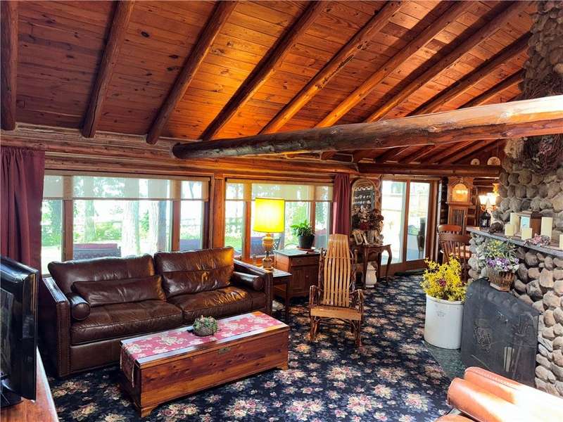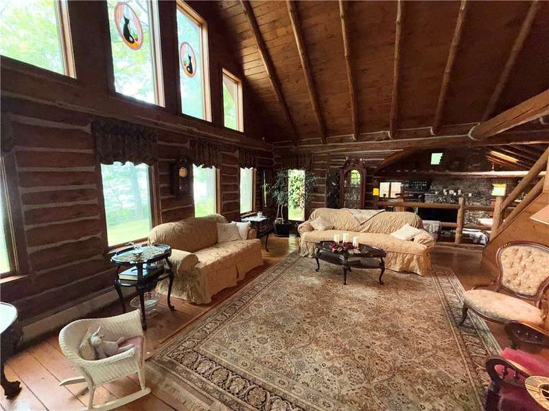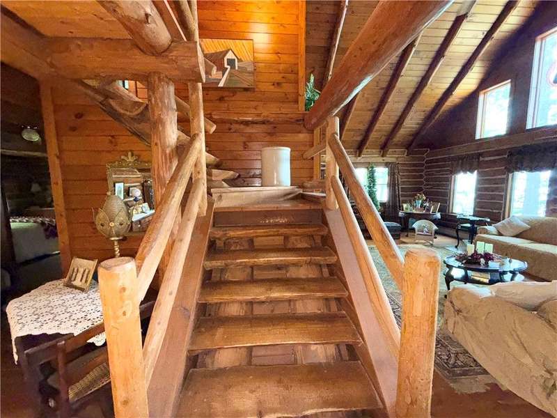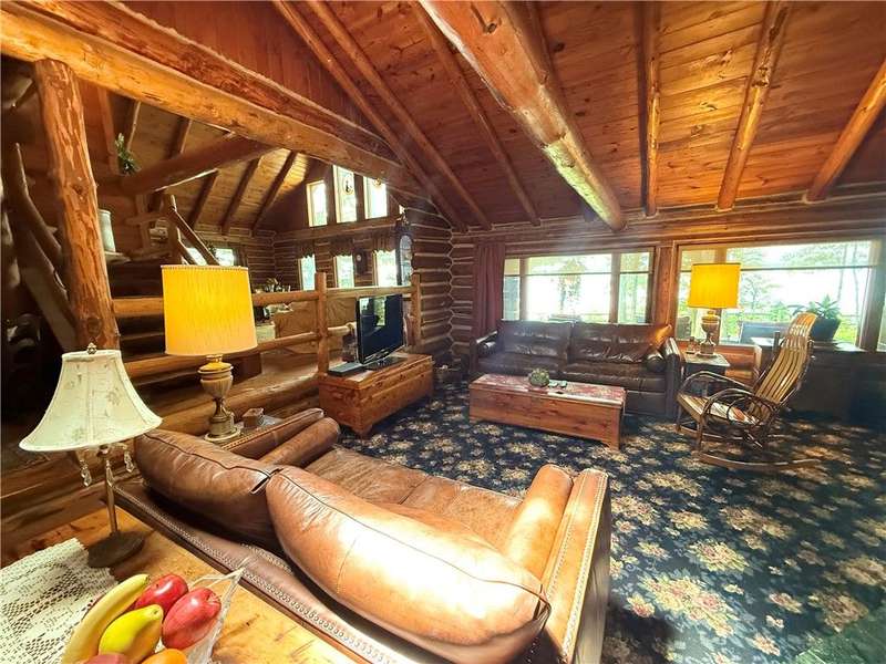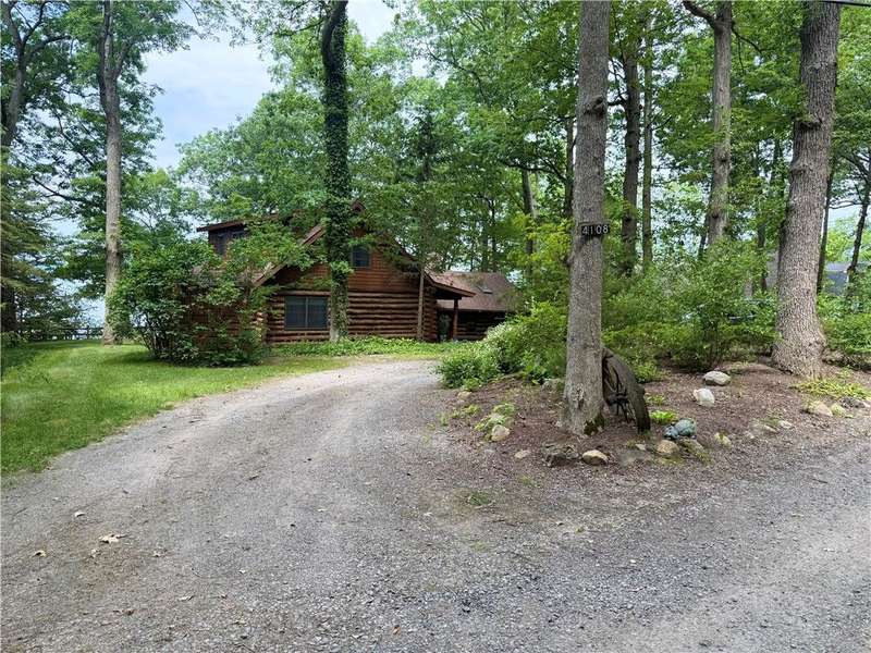 Welcome to your Dream Lakefront retreat?this stunning log cabin home offers 100 feet of prime lake frontage, spread across two parcels for a rare and versatile opportunity. The main home boasts 90 feet of frontage and features an open floor plan with a large formal living room adorned with cathedral ceilings, exposed wood beams, and sweeping lake views. A spacious family room is anchored by a floor-to-ceiling stone fireplace, while the formal dining area with glass sliding doors leads to a generous deck and deep backyard that takes you right to the water's edge via metal steps. The kitchen includes bar seating and flows seamlessly into the living areas, all enhanced by rich hardwood floors throughout. The home has been thoughtfully renovated, with the south side addition built in approximately 1993, blending beautifully with the original charm. The first floor offers two bedrooms and a full bath, while the second floor includes an additional bedroom and full bath, also featuring cathedral ceilings and lake-facing windows.The walk-out lower level of the main house is partially finished with a full kitchen and living area, adding even more space to enjoy or entertain. This exceptional property has public water and the potential for natural gas service in the future. A 48-hour notice is required to show. Agents, please be sure to read and share private remarks. The second parcel includes an oversized two-car garage with a fully furnished one-bedroom apartment above, complete with a beautiful, enclosed porch offering panoramic lake views. The apartment has separate utilities from the main house, making it ideal for guests, rental income, or a private getaway.