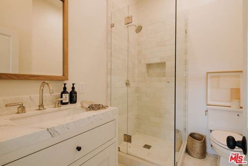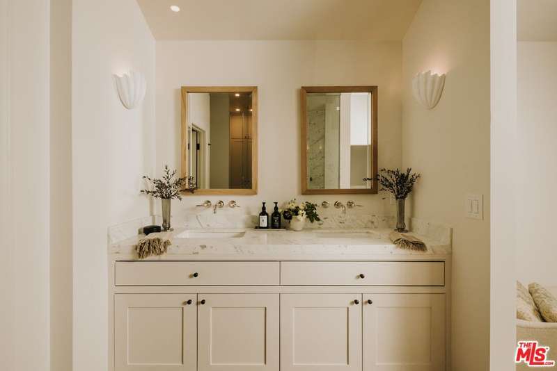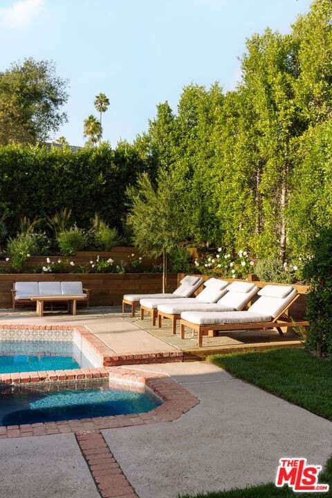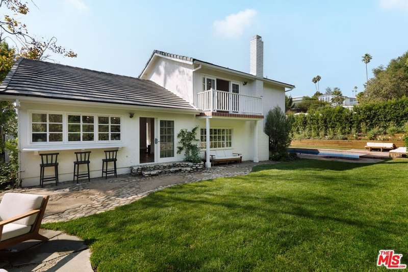 Perfectly tucked away on a peaceful cul-de-sac in Mandeville Canyon, this exquisitely reimagined traditional home offers warmth, sophistication, and a seamless blend of classic charm with modern comfort. Step inside to discover soaring vaulted ceilings and sun-filled interiors that set a warm and welcoming tone throughout that exude an inviting elegance. The main level unfolds with a spacious formal dining area, a gourmet chef's kitchen, and a sunken living room centered around an elegant fireplace. The chef's kitchen showcases generous granite countertops, custom cabinetry, and seamless flow into the family room complete with built-ins, recessed lighting, and French doors that open to a serene outdoor sanctuary. A convenient downstairs bedroom and bath offer flexibility for guests or an ideal home office. Adjacent you will find a family lounge provides direct access to the backyard perfect for children or casual entertaining. Extensive windows and doors invite natural light and viewpoints of the lush backyard, creating a seamless indoor-outdoor connection ideal for entertaining. The interiors extend gracefully to the private backyard oasis, where lush landscaping frames a large swimmer's pool, a relaxing spa, and grassy yard ideal for lounging or gathering around the fire pit beneath the stars. Upstairs, three additional bedrooms offer comfort and tranquility, including a serene primary suite that captures the essence of Mandeville Canyon living. Every space feels calm, curated, and connected to nature. Additional features include Rose Uniacke lighting throughout, Waterworks plumbing and a coveted corner lot that offers both privacy and curb appeal. With ample garage space for parking or storage, this home perfectly blends functionality and style. A true Mandeville Canyon gem, this residence embodies the best of Southern California living, where comfort, beauty, and community come together.