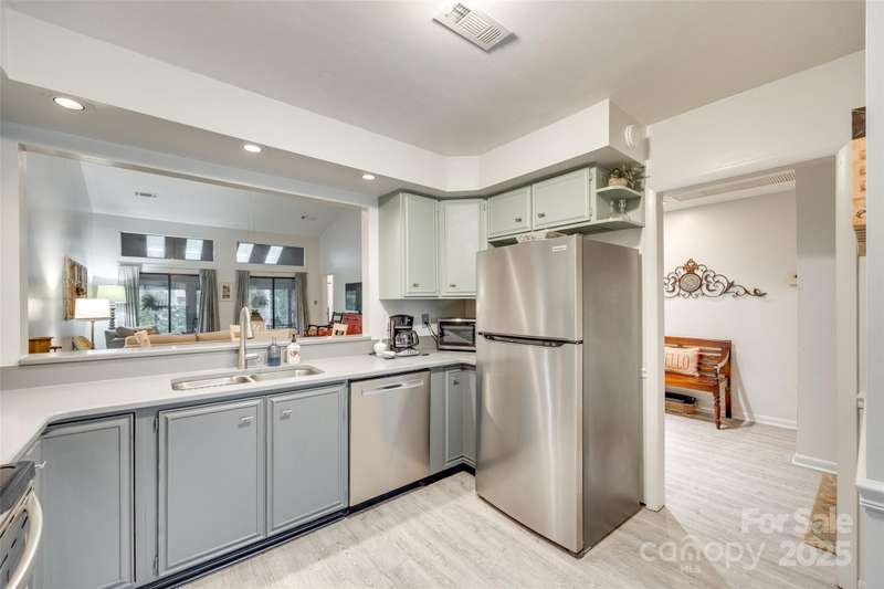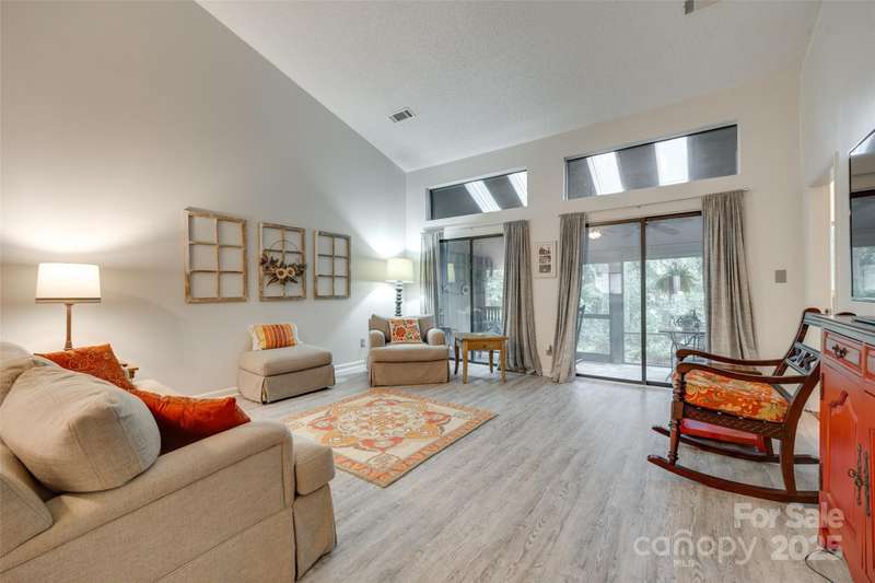 Don't miss the opportunity to make this two-bedroom and two-bath condo, located in Lake Wylie's premier gated community of River Hills your own! Rare to the market, this condo boasts one level living, enjoy your morning coffee on your screened in back porch watching the sun rise, very private with a ton of tree coverage! Beautiful sitting room off the primary with wood burning fireplace. Bluff Villas have their own private pool and private dock looking over the marina. Community has 24-hour security, a private beach area, walking trails, playground, and so much more! The community additionally offers separate, optional country club membership levels for social, golf, tennis and use of the fitness area with 2 additional pools. Make this lovely home yours today!