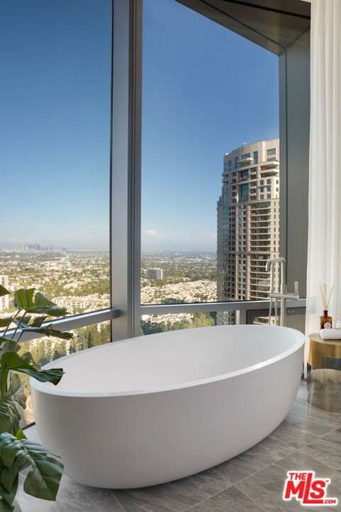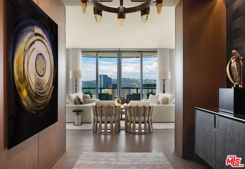 A custom-designed residence by McRae Lambert & Dunn, Residence 26C at the prestigious Century Plaza Park Elm is a one-of-a-kind one-bedroom plus den, offering unparalleled panoramic views to the north and east, facing the Wilshire Corridor and Downtown LA skyline. Upon arrival through a private elevator vestibule, you are welcomed by a grand formal entry foyer that flows into an expansive great room with 10-ft tall floor to ceiling windows. The den features rich walnut paneling and a travertine gas fireplace, creating an atmosphere of warmth and refined sophistication. The Snaidero-designed kitchen is equipped with Miele appliances and a custom slab waterfall island, blending sleek design with exceptional functionality. All rooms have operable windows which is unique in high-rise living. The primary suite offers dual custom Italian-designed closets and a luxurious five-fixture en-suite bath. Smart home features include Dual AC control, a Lutron lighting system and Palladium motorized shades. Residents enjoy world-class amenities including a resort-style pool, state-of-the-art fitness center, steam-equipped locker rooms, screening room, library, game room, personal wine storage, private dining rooms, guard-gated entry, and 24-hour concierge service.