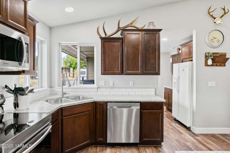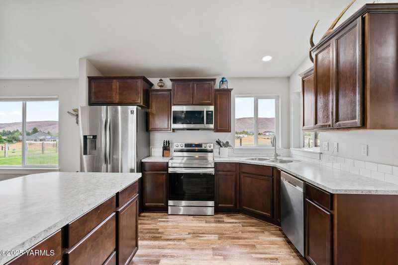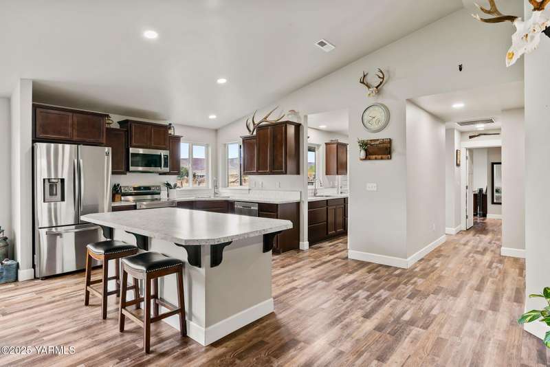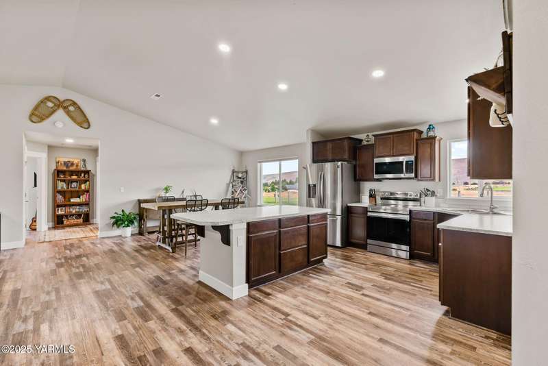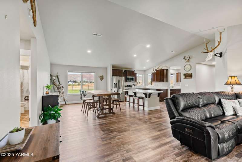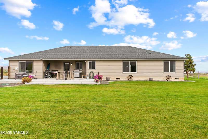 Love the idea of country living without giving up modern comfort? This 2021-built West Valley home offers the best of both worlds -- no HOA, no restrictions, just open space and freedom to live your way.Set on 5 level acres with fenced pasture, this single-level 2,238 sq. ft. home is designed for easy living. The open floor plan features vaulted ceilings, durable LVP flooring, and a spacious kitchen with a walk-through butler's pantry -- perfect for entertaining or everyday convenience. Large windows frame wide-open views of Yakima's countryside, filling the home with natural light and peaceful vibes.With 4 bedrooms and 2 full baths, there's room for everyone -- or space to create a home office, gym, or hobby room. The fully fenced backyard and covered patio invite year-round outdoor living. Bring your animals, your RV, or your dreams -- there's room for all of it here.Enjoy the quiet, starry nights, and wide-open skies that come with true country living, all just minutes from town. If you're ready for more space, more freedom, and less hassle, this is the one.
