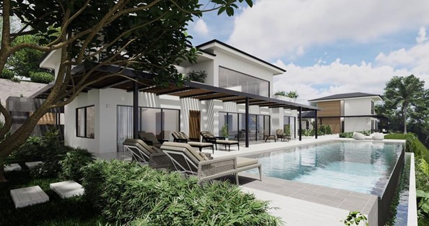 La Jolla Lot T: How would you like a brand-new, custom-built home perched on a hillside that offers comfort, luxury, and sophistication? If you do, then this residence in Mar Vista’s La Jolla neighborhood is perfect for you! With 6000 sq ft of indoor living area plus lots of outdoor space, you will enjoy limitless freedom and privacy.Move effortlessly through the open-concept living area with its dramatic 2-story ceilings and abundant natural light through a retractable glass wall leading to a pergola-covered patio and pale blue swimming pool with a horizon edge. The outdoor area is beautifully laid out with decks surrounded by tropical landscaping where you can find a perfect spot to read or doze off in the shade or sun. There is even a covered outdoor kitchen and eating area for a quick lunch after a dip in the pool.Back inside you will love the chef’s kitchen with brand new appliances and a spacious dining area. There are 5 bedrooms and 5 bathrooms for you and your guests to choose between. All have high-end furnishings and a modern, cool, restful décor.The entire home is bright and white with a clean, inviting feeling. It just makes you want to kick your shoes off, collapse into the nearest chaise lounge, and go “Ahhhh…”The luxury development of Mar Vista is located between two of Costa Rica’s most gorgeous beaches—Brasilito and Flamingo. Mar Vista offers its residents security behind gates manned 24/7, a community pool and tennis courts, hiking trails, a playground, a bilingual school, and a nature preserve. In the area are a huge variety of restaurants to dine in and beaches to explore. Just up the road is the brand-new Flamingo Marina, a launching spot for innumerable water sports and activities.Please schedule your visit to Mar Vista’s La Jolla, Lot T, today, and start living the life you have been dreaming of!